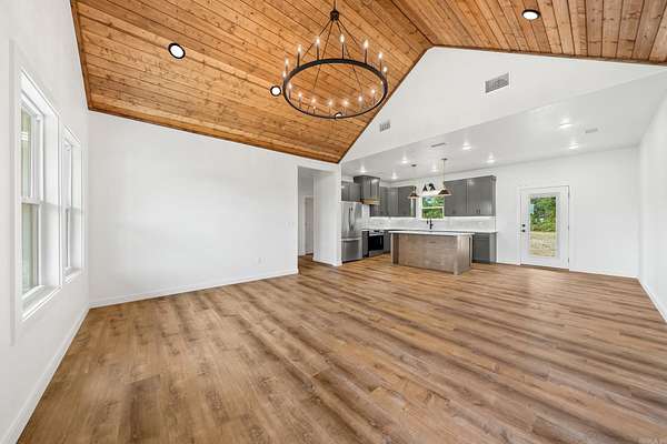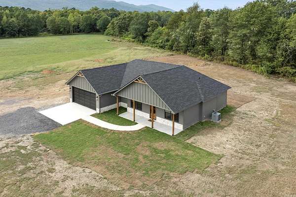 Beautifully constructed, brand new home situated on 3.19 picturesque acres! With 360 mountain views, pastureland, and big skies, this property will provide the tranquility of country life, with the convenience of being just minutes from downtown Mena! The home features 3 spacious bedrooms, two full baths including a custom glass shower in the primary suite, and an enticing soaking tub in the other. The open concept living space has high vaulted ceilings and features a beautiful chandelier lighting fixture. Additional Features include BRAND NEW stainless steel appliances, quartz countertops with a large island, 100% waterproof luxury vinyl flooring throughout, modern attractive fixtures, custom tiling in both bathrooms, extremely durable exterior lap siding, and a 30 year shingle roof! The home also includes a spacious 2 Car GARAGE! IF you're looking for a Turn-Key, BRAND NEW property in a stunning location, this is it!