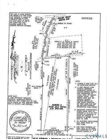 PT FRANCIS BONNER HU ACRES:9.63 Full legal description includes 9.63 acres in Prince George + 3.59 acres in Dinwiddie for a total of 13.22 acres with a 50' right of way off Route 606