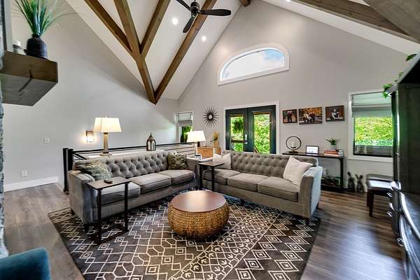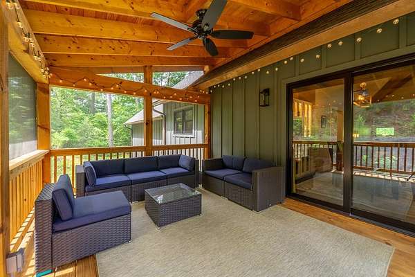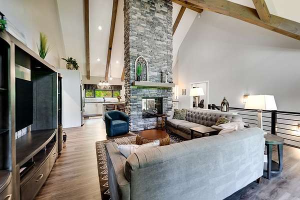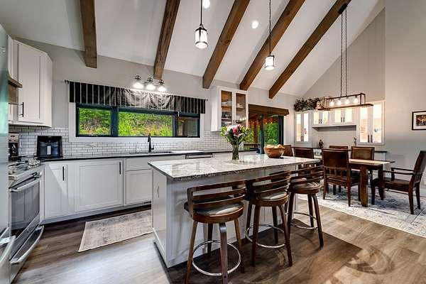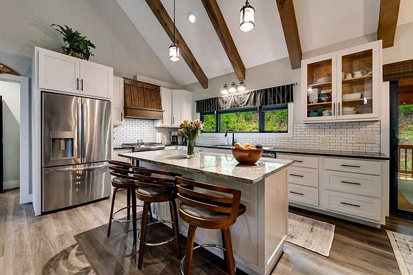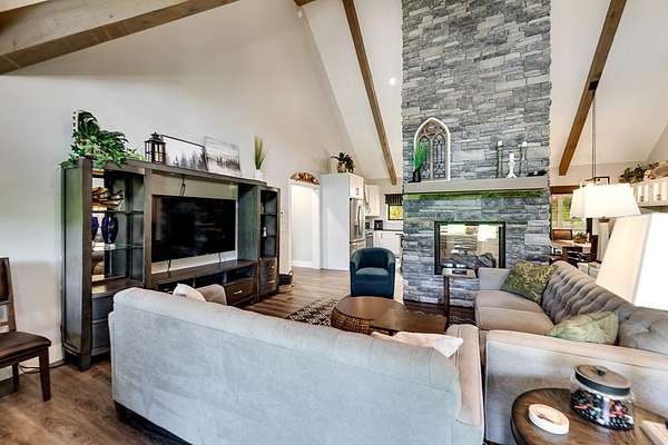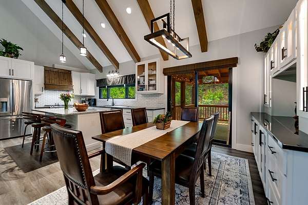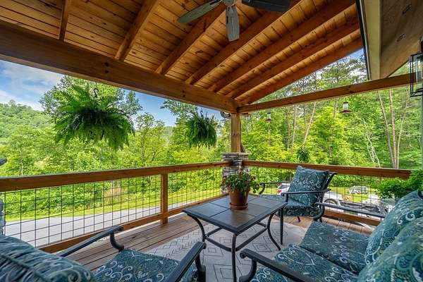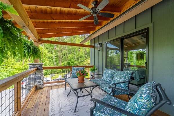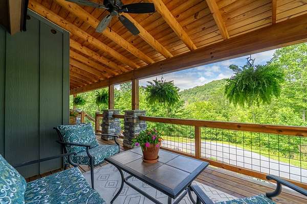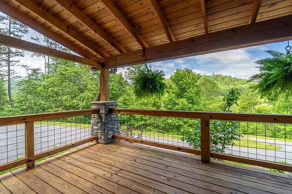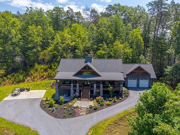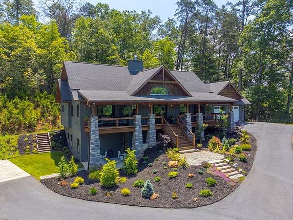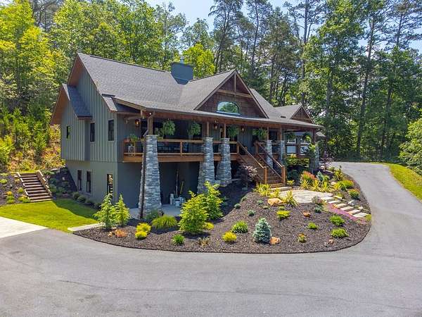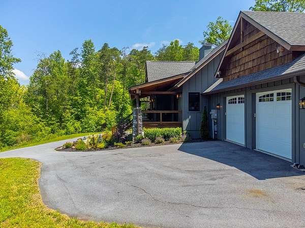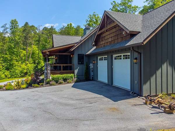 Refined mountain living in this newer custom-built, partially furnished home on a private knoll on 2.23 acres, offering year-round close-range mountain views & winter views of the Little Tennessee River. This 3-bedroom, 3.5-bath retreat features vaulted ceilings with custom wood beams, a dramatic floor-to-ceiling stacked stone gas fireplace, & luxury vinyl plank flooring. The gourmet kitchen features high-end appliances, a gas range, oversized island, & a walk-in pantry with ample storage. Dining area offers custom built-in cabinetry, ideal for entertaining. Designed with flexibility in mind, the home features spacious bedrooms, each with en-suite baths, creating an ideal layout for guests & excellent vacation rental potential. The finished lower level enhances this versatility with a large family & game area, guest suite, bonus sleeping room, full bath, & generous workshop/storage space. Enjoy peaceful mornings on the inviting front porch or unwind on the private screened back porch. Also includes a large attached main-level garage & a poured slab ready for a future shop with water & power access. Turnkey mountain living with luxury, flexibility, & income potential.