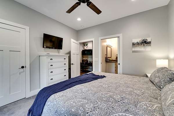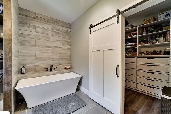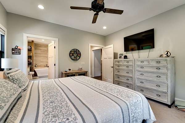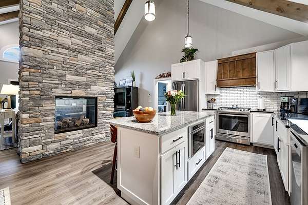 - Cathedral/Vaulted Ceiling, Ceramic Tile Bath, Kitchen Island, Large Master Bedroom, Main Level Living, Pantry, Primary On Main Level, Primary W/Ensuite, Soaking Tub