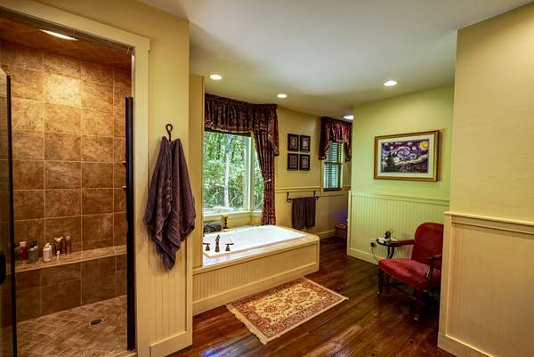 - Beamed Ceilings, Bookcases, Ceiling Fans, Chandelier, Double Vanity, Dry Bar, Entrance Foyer, Garden Tub Roman Tub, Granite Counters, High Ceilings, His And Hers Closets, Kitchen Island, Multiple Closets, Natural Woodwork, Open Floorplan, Pantry, Recessed Lighting, Separate Formal Dining Room, Vaulted Ceilings, Walk In Closets