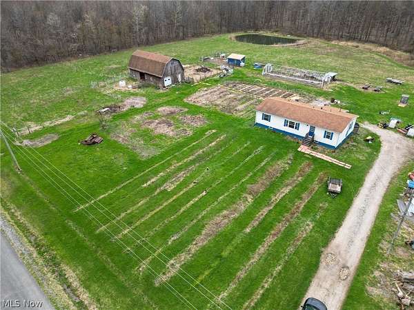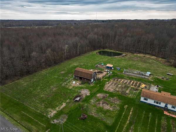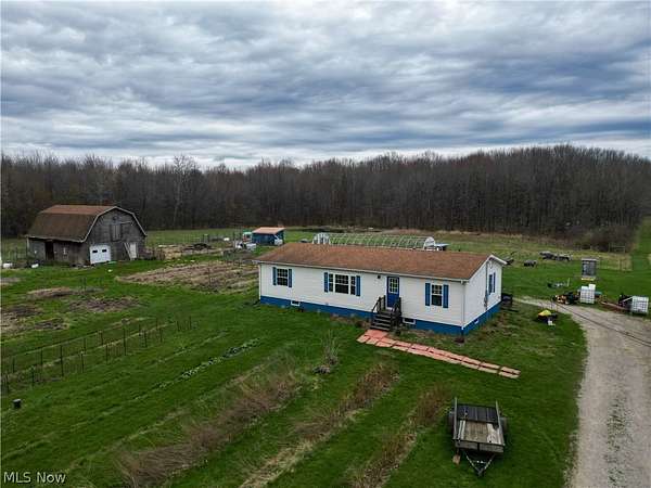 Farm Living is the Life for me! If you've ever wanted to live the farm life, this 3 bedroom 2 bath manufactured home set on a full basement might be just what you've been looking for! The 15+ acre parcel features a barn w/workshop or implement storage area, gated pasture land, chicken coop and pen, pond, plenty of wooded area, a greenhouse and a wide variety of fruit trees (apple,plum, pear, asian pear and nectarine), berry bushes (raspberries, blueberries, elderberries, strawberries) and garden vegetables. The 1450+ sq ft home has been COMPLETELY updated in 2025/26 and boasts an oak kitchen with butcher block tops, deep well farm sink, stainless steel appliances, slider to the rear yard patio, LifeProof Flooring throughout, 1st floor laundry, utility room, mud room and 2 better-than-new full baths. Paved road, well, septic and AC. Basement offers additional finished living space opportunities. Come out to the Country and escape!