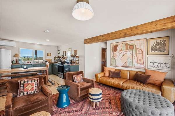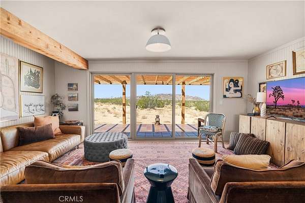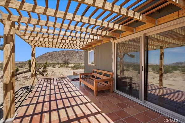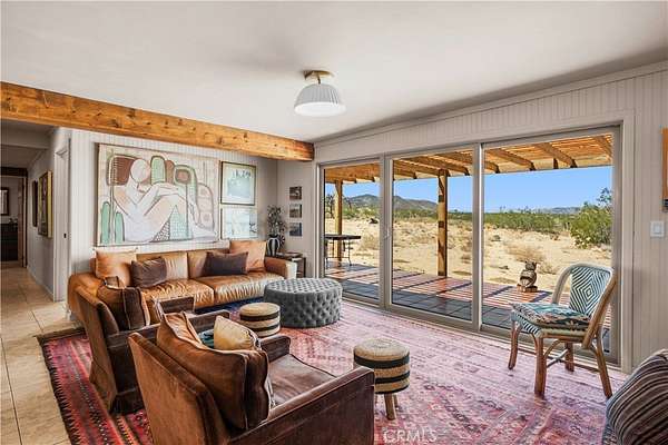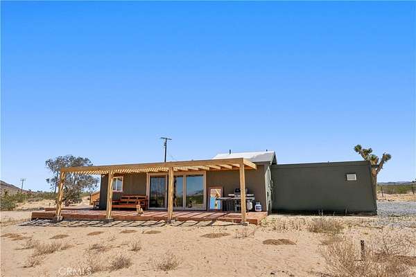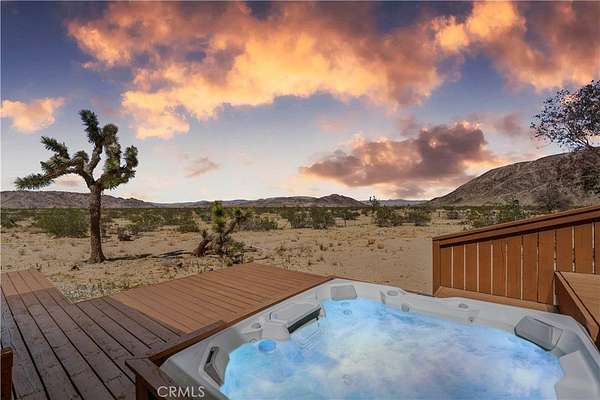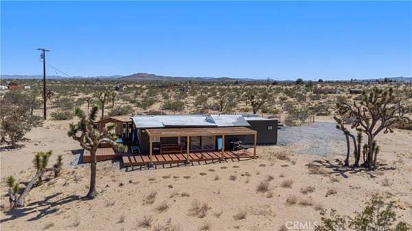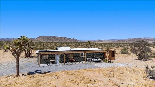 Step into your own private desert paradise with this unique, two bedroom (plus bonus room), one bath, fully-fenced five-acre property, offering peace, privacy, and endless natural beauty. Nestled in the heart of Landers, this charming home, provided fully furnished, provides direct access to miles of government-owned land -- a rare opportunity to live next to an unspoiled, forever-wild setting. Hike nearby Goat Mountain or venture out to legendary Giant Rock from right outside your door. Just a short stroll in the other direction, you'll find the Integratron, offering rejuvenating sound baths and a tranquil escape for the mind and body. Back at home, greet guests on the welcoming front porch or retreat to the private, hidden back porch -- the perfect place to relax and take in the sweeping desert views and the seemingly never-ending wilderness that stretches out beyond your property. A brand new viewing deck and spa area are perfect for watching the sunset and stargazing at night. You will love watching the sunrise from the Saltillo-tiled patio. Originally built in 1958 and thoughtfully expanded over the years, this home has been recently updated and remodeled with modern touches. The spacious layout offers plenty of room for relaxation and enjoyment, whether you're entertaining or seeking solitude. With its unparalleled access to nature, modern conveniences, and boundless potential for customization, this is Landers at its finest. Whether you're looking for an investment property (home is successful short-term rental), remote desert getaway or a place to settle into the tranquility of the desert, this home has it all.