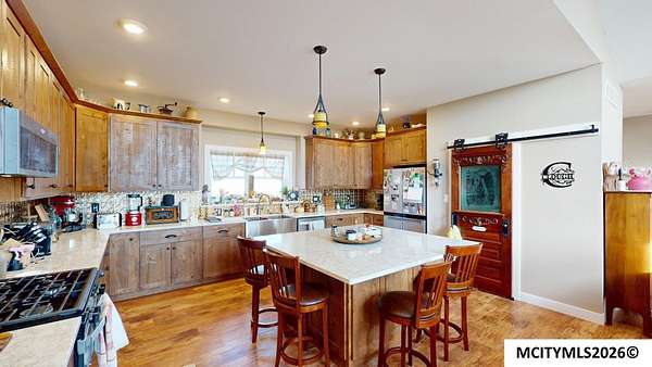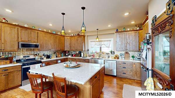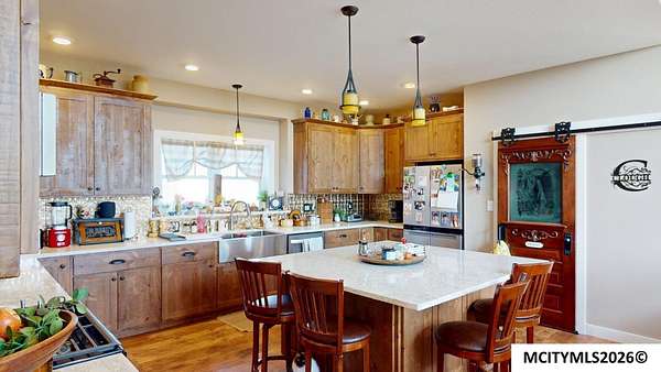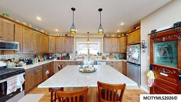 This stunning riverfront home sits on 13.81 picturesque acres and offers a rare blend of modern comfort and breathtaking natural beauty. Built in 2022, the home features an open floor plan designed to maximize sweeping river views from nearly every main living space. The spacious kitchen is ideal for entertaining, complete with a walk in pantry, solid surface countertops, and custom Amish built alder wood cabinetry. The kitchen flows into the vaulted living room, where a cozy fireplace creates the perfect gathering space on cool evenings. Large windows were thoughtfully placed throughout the home to showcase the serene river setting and fill the interior with natural light. The generously sized primary suite offers a private retreat with a spa like bath featuring a soaking tub, separate shower. Main floor laundry includes additional cabinetry for added storage and convenience. Two additional bedrooms and a full bath are located on the opposite side of the home. Spacious heated garage.