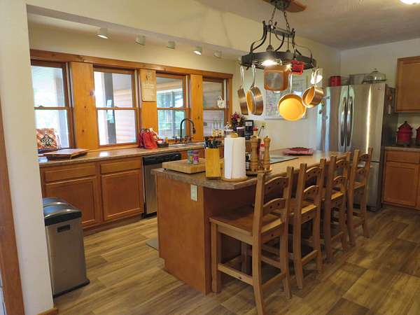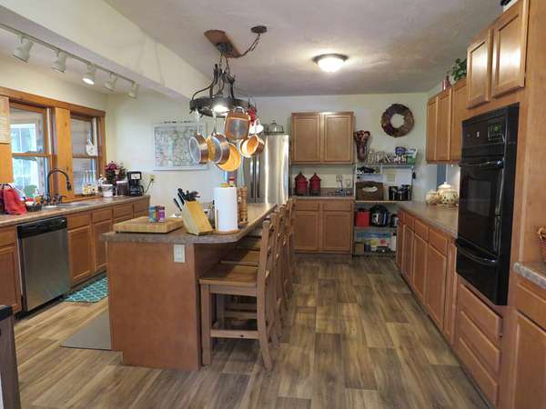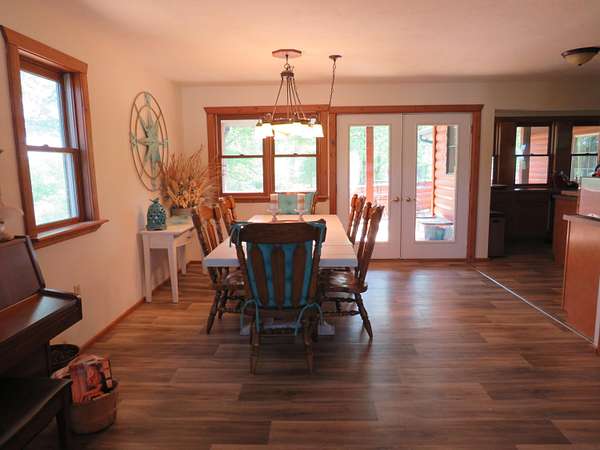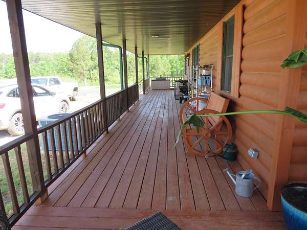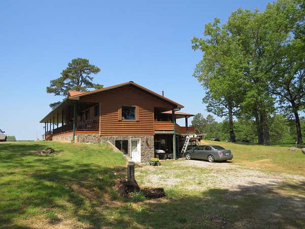 19 M/L ACRES & LOG HOME - NATIONAL FOREST ON TWO SIDES-HUNTER PARADISE - PRIVATE SETTING - Excellent condition 4163+ sq. ft., 1 1/2 Story Log Home has 5 bedrooms, 3 1/2 baths with full finished basement. Has covered wrap around porch on 2 sides, side porch on 1 side, concrete patio with walk out basement. 2 full equipped kitchens, large living/dining rooms, family room, & 2 utility rooms. Home is perfect for extended family member. Property is located near a rural community and 1 mile to the North Fork River for floating, fishing and camping. Priced $654,9.00.00 NOTE: House was brought by buyers in 2012 and was just framed in, unfinished basement etc. Seller do all new construction to the structure in 2013 and 2014. Hook ups for fireplace is there. 2 central heat and air units. New well pump system in July of 2023. MUST SEE! $654,900.00