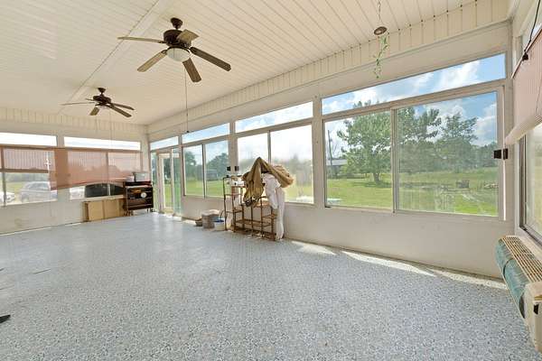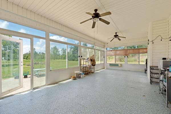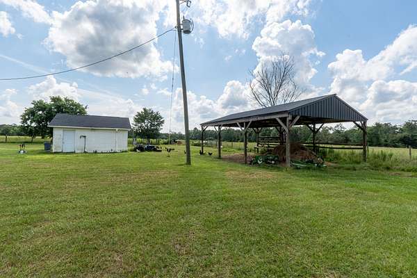 Experience country living on this 40-acre property offering a 5-bedroom, 2.5-bath home set on beautiful cleared conservation pasture and farmland, with wooded borders providing privacy. The land is fully fenced and includes approximately 18 acres of open pasture. Property features include a detached garage, pole barn, large chicken coop, and camper hookups with electric, water, and septic connections. A 15*19 sunroom faces the backyard, offering a peaceful view of the surrounding land. The main bathroom includes a stand-up shower and dual vanities. Recent updates include a new roof, new water heater, a Bosch HVAC system, and a one-year-old dishwasher. The home is all electric, with a fireplace that can be converted to propane gas. Additional features include well water, septic system, and an active termite bond.