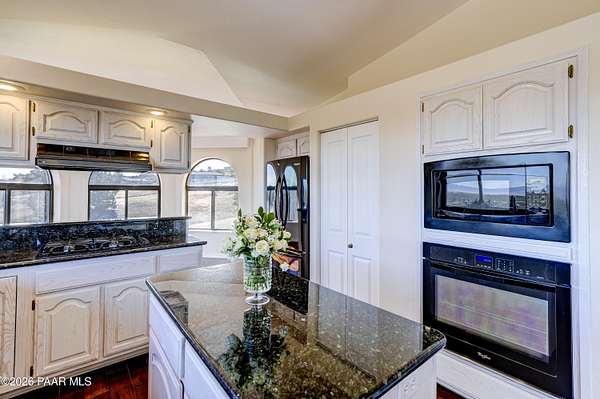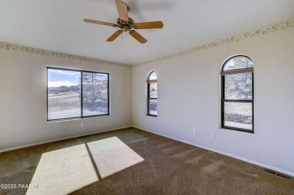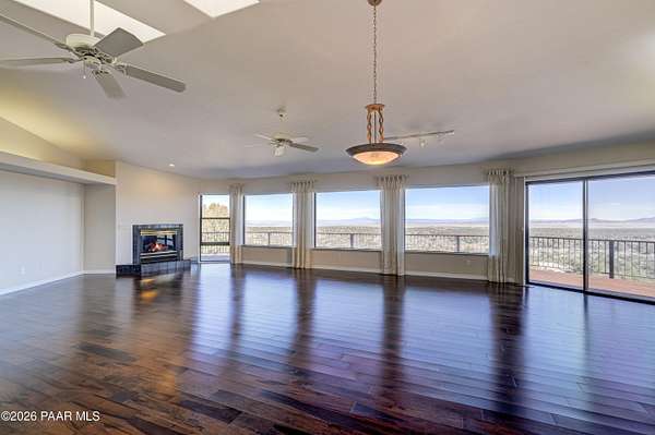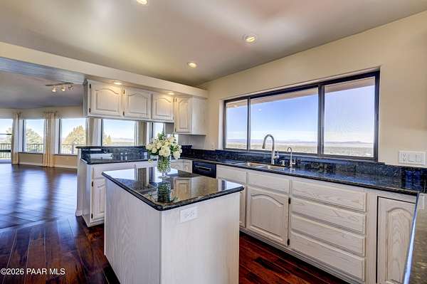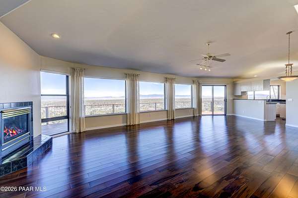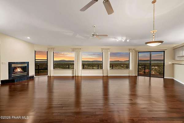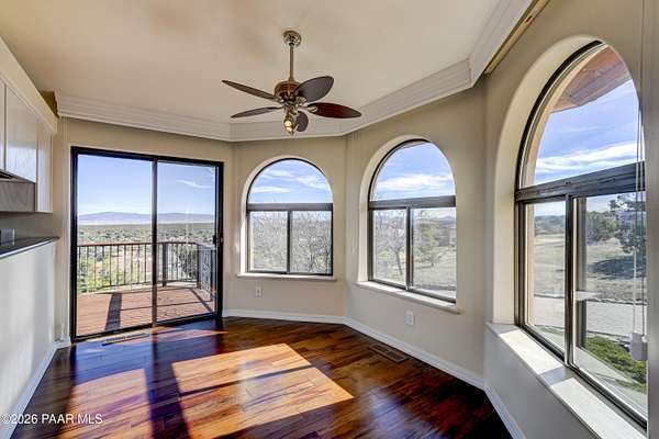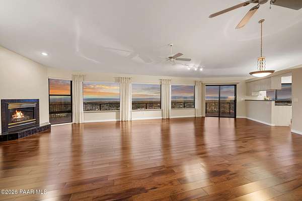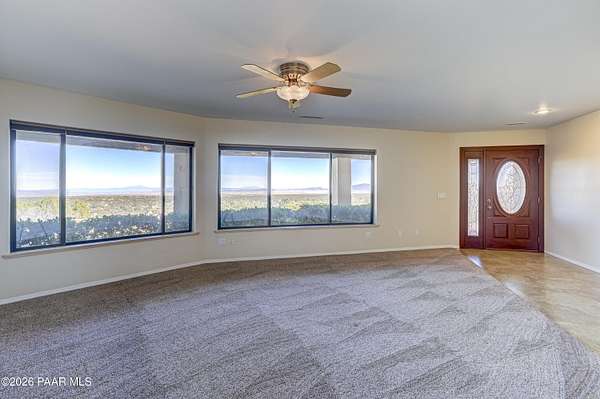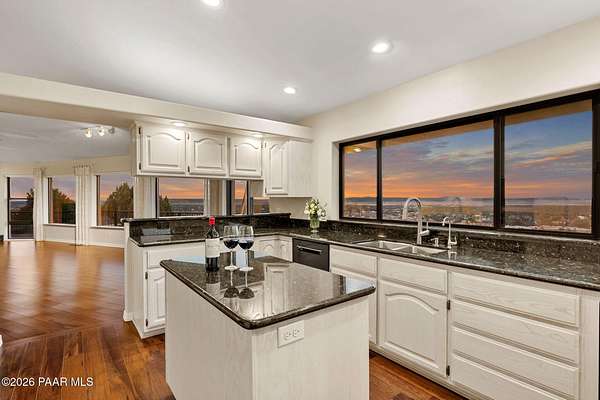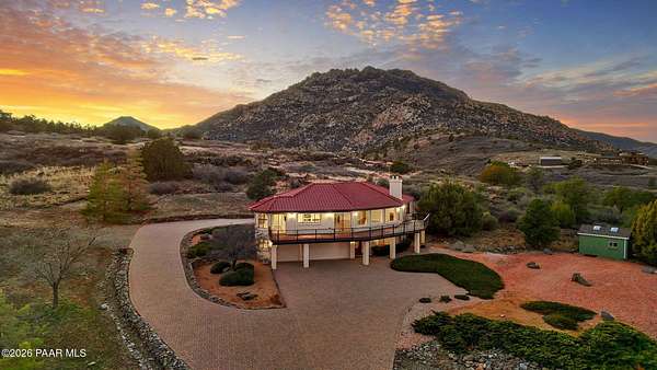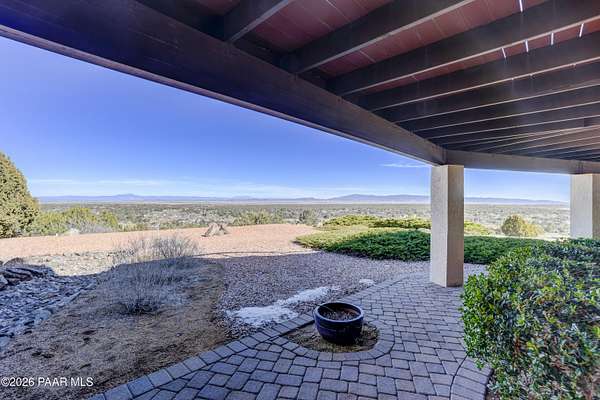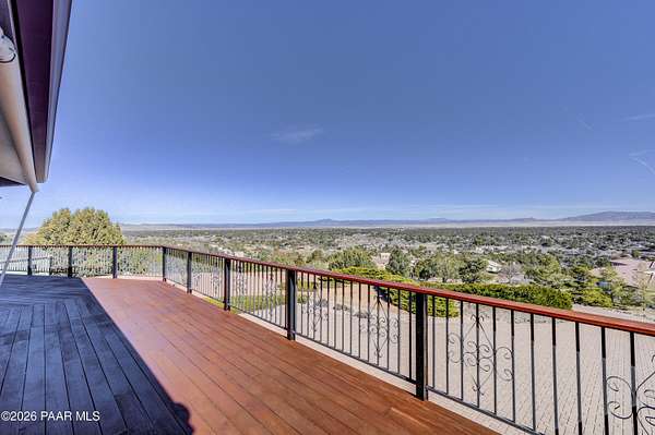 Perched on 2.37 acres in a peaceful Prescott setting, 2751 W Boone Court offers a lifestyle defined by space, privacy, and unforgettable views. From sunrise to sunset, sweeping panoramas of the Bradshaw Mountains, National Forest, San Francisco Peaks, and the rolling valley unfold from nearly every window--creating a daily connection to Northern Arizona's natural beauty.Designed for effortless living, the 3,270 SQFT home allows you to live primarily on one level, where raised ceilings and expansive windows fill the interior with light and scenery. The main level features Brazilian pecan flooring throughout the great room and kitchen, anchoring the space with warmth while framing the breathtaking views beyond. The primary suite is a serene retreat with luxurious bathroom, complemented by an additional bedroom and bath--ideal for guests or flexible living.The lower level, with its own private entrance, adds versatility and privacy with a bedroom, bathroom, office, and additional family room with stunning view - perfect for extended guests, multi-generational living, or a quiet work-from-home environment. Thoughtful amenities enhance everyday ease, including a dumbwaiter providing ultra convenience from the 3-car garage directly to the kitchen. The subdivision's private water company, along with a seller-installed 5,000-gallon water storage tank, offers added peace of mind and self-sufficiency.At 2751 W Boone Court, the lifestyle is one of comfort, views, and quiet luxury--where wide-open skies, mountain views, and well-designed living spaces create the ultimate sanctuary.