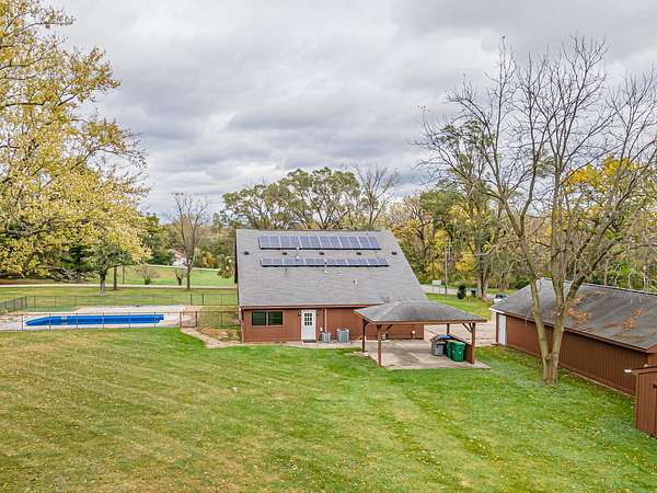 Welcome to this great 4-bedroom, 4 full bathroom home that is its own nature resort oasis sitting on 2.5 acres with an in-ground pool! The grand entryway brings you into the expansive kitchen area. The kitchen is an entertaining dream with ample cabinetry and counterspace to prep and gather around. Off of the kitchen is the dining room that has 3 closets for great storage, recessed lighting and French doors out to the fenced pool area! The living room has recessed lighting and stone wall feature and access to the side of the house. The hallway off of the living room brings you to one bathroom, one of the bedrooms and a sauna! The other side of the house has 2 additional bedrooms, a bathroom and the laundry room. Upstairs is the spacious primary suite with vaulted ceilings, large picture windows to enjoy the view, a wall of closets and a spa like bathroom. The bathroom features a jetted soaking tub and separate shower with body sprays. There is also a huge family room space on the second floor that could also be used as a recreation, flex or playroom space as well. There is also another bathroom and storage area rounding out the second level. The whole house interior and exterior including the garage was freshly painted and one furnace was replaced. The in-ground pool has a new liner and has been winterized. Solar panels are rented. Be in before the holidays and enjoy this home! Schedule your showing today!