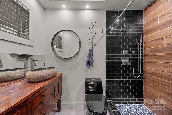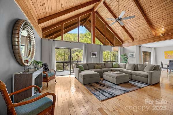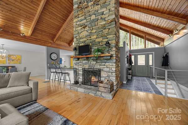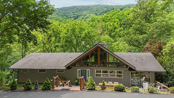 Capture this unique 22.55-acre solar-powered property on Burntshirt Mountain in strong, community-oriented Gerton, NC. While rural at first glance, it's convenient to shopping and healthcare. Explore this renovated, natural light-filled home with private forest, stream, trails, fire pits, and space for gatherings. Two modern kitchens, indoor/outdoor dining, dual laundry, and ample beds/baths make it ideal for living, guests, or rental. The bathrooms each have their own unique personality. Vaulted ceilings, stone fireplace, hardwoods, and tile floors on the upper level; industrial-style lower level with polished concrete floors, 2nd kitchen and a wood stove. Oversized decks and patios, great for lots of guests, hot tub and a fenced area for pets/livestock. Parking at door level on both floors. Entire home is above ground, so no dark basements. Solar w/ 3 Tesla Powerwalls offers near-zero electric costs. Includes 3-car carport, storage rooms, paved drive, and private waterfall trail. Mortgage savings may be available for buyers of this listing.