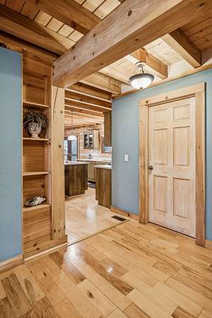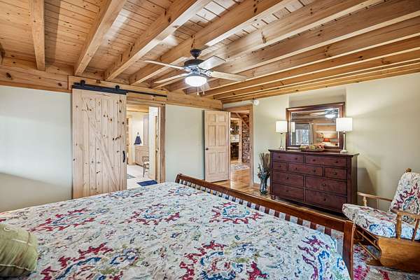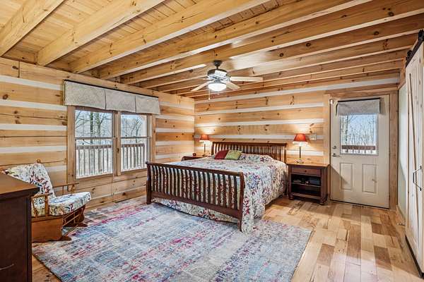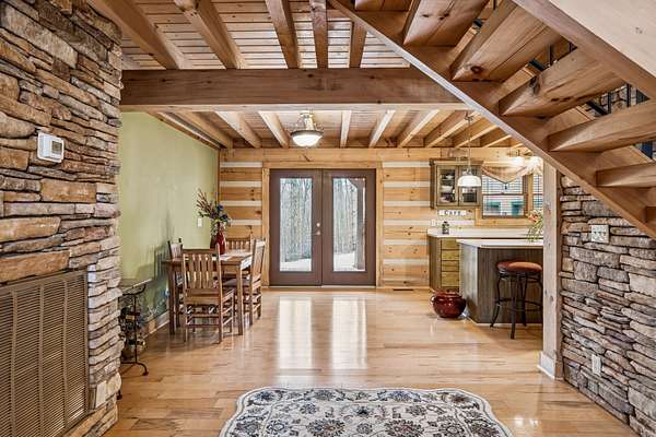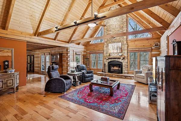 Set among the mature wooded landscape of Franklin, this one-of-a-kind resort-style estate offers the rare balance of complete privacy and everyday convenience. Blending the serenity of the countryside with proximity to the amenities of town, the property presents a truly distinctive lifestyle opportunity. Crafted as a modern log cabin with intentional design and refined finishes throughout, the residence seamlessly combines rustic character with elevated luxury. Expansive living spaces invite both quiet relaxation and effortless entertaining, while thoughtful architectural elements frame scenic views at every turn. A once-in-a-lifetime THX 7.4.2 surround sound home theatre, appointed with premium zero-gravity seating, delivers an immersive cinematic experience rarely found in private homes. Outdoors, the approximately 700-square-foot wraparound porch provides an exceptional setting for morning coffee or evening gatherings, overlooking tranquil natural surroundings. The detached guest house, ( DADU ) enhances the estate’s versatility, complete with a full kitchen and bath—ideal for extended stays, multigenerational living, or private office use. Meticulously maintained by its current owners, the property reflects pride of ownership throughout, including replacement of three of four HVAC units, a tar-and-chip drive, full gutter system upgrade, a renovated primary bath, and numerous additional improvements. Green belt tax relief!