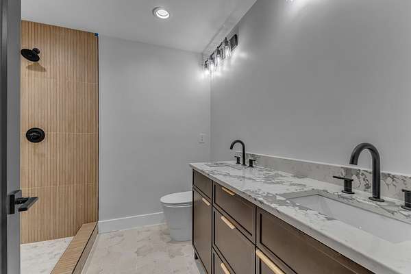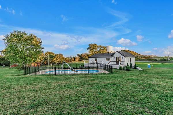 The primary suite is a true haven, featuring a custom tile shower, double vanity, and an expansive walk-in closet. Multiple living areas provide space for relaxation and entertaining, including a second kitchen and dining area (28x27) plus an additional living area in the finished basement--ideal for guests or multi-generational living. Step outside to the oversized deck overlooking the in ground pool and soak in sweeping countryside views.