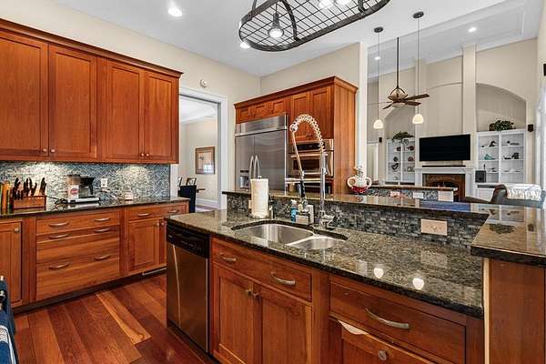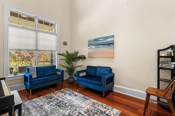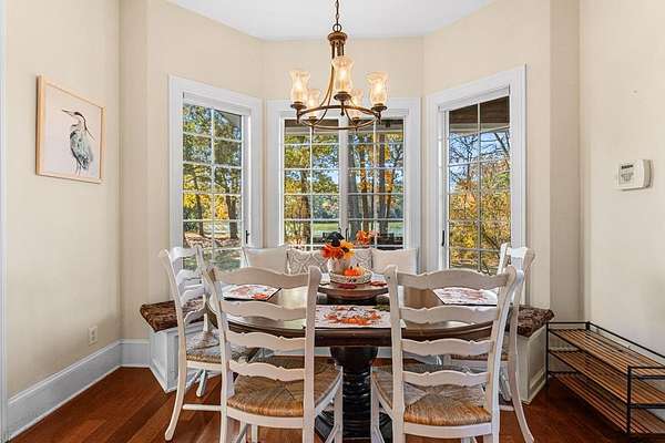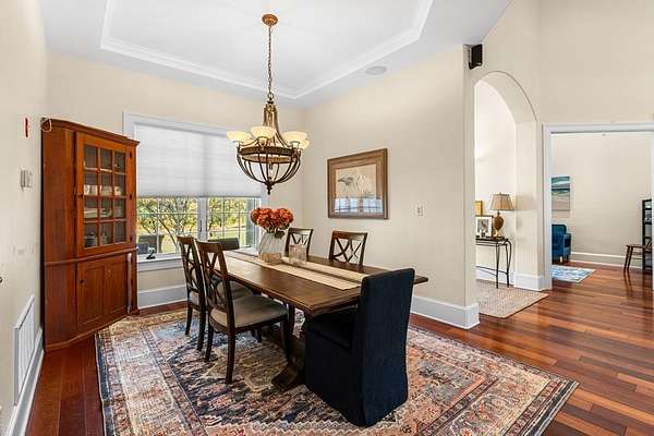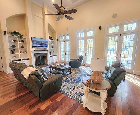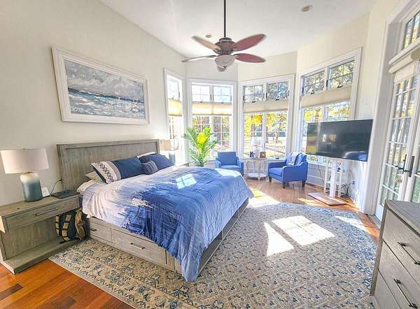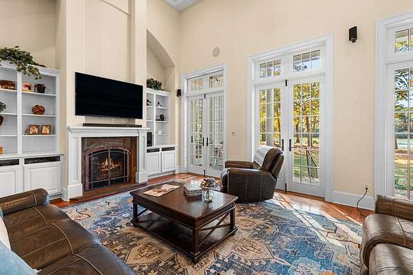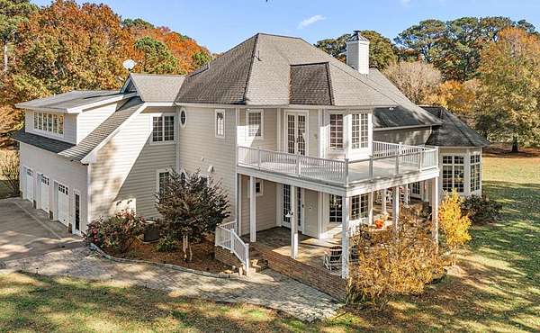 Chateaux of Lake Allure - a Stunning 4,300 sq. ft. lakefront home near historic Cape Charles. Features a chef's kitchen with Wood-Mode cabinetry, top-tier appliances, 48" gas range, and granite counters. Dramatic 14' ceilings in kitchen and bedrooms, 24' tray ceiling in living room, cathedral office ceiling, 7 high end oversized French doors. Hardwood , slate & ceramic tile floors throughout. First-floor primary suite with private sitting room and spa-like bath. Slate-covered front and rear porches w/ copper roofs, 3-car garage and 5 private acres w/ fruit orchard overlooking Lake Allure. Enjoy access to soft sand beach, pool & breathtaking sunsets! 10 minutes to historic Cape Charles with shops, restaurants & marina, 30 to VA Bch. A perfect spot to enjoy country living near everything!