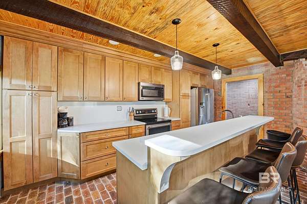 Welcome to this truly unique, beautifully remodeled 1965 home tucked away off Burkhardt Rd, offering privacy and charm with its own hidden drive. With approximately 2,400 square feet of living space, this spacious 3BD/2BA residence blends timeless character with thoughtful updates, creating a warm and inviting place to call home. Inside, you'll find distinctive brick-aligned floors and walls, rich cedar accents, and striking exposed wood beams that showcase the homes rustic, lodge-style appeal. Every detail adds to the cozy yet spacious atmosphere, making this property truly one of a kind. The generous layout provides plenty of room for both everyday living and entertaining. Step outside to the screened patio, the perfect spot to unwind and enjoy the peaceful, private surroundings. This home comes partially furnished and includes a washer and dryer for added convenience, making your move even easier. Please note, this property is not pet friendly. Tenant responsible for all utilities. Property will be held off market up to 14 days with Property Holding Fee with approved app. Lease Prep Fee of $75 is due prior to move in. Renters insurance is required. Sorry, this property is not pet friendly.