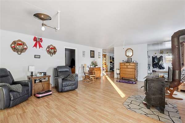 Looking for your space in the country?... This ONE has plenty of it! The home is over 5,500 SF and sits on 4 acres of flat land. It could be used as one massive home, keep part of it as a mother-in-law suite, or even live in one side and rent the other as a duplex. It's currently configured as two sides with each having a kitchen with pantry, living room, four bedrooms, and two baths as shown on the floorplans. There's also a large office and a laundry room. Walking inside you'll notice the solid construction and more recent updates throughout. The wood burners provide amazing warmth this time of year with supplemental propane heat if desired. There's a large carport that could easily be finished into an attached garage and the existing detached barn offers plenty of utility for animals or general storage.