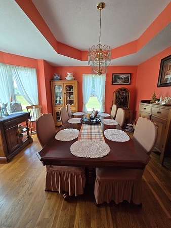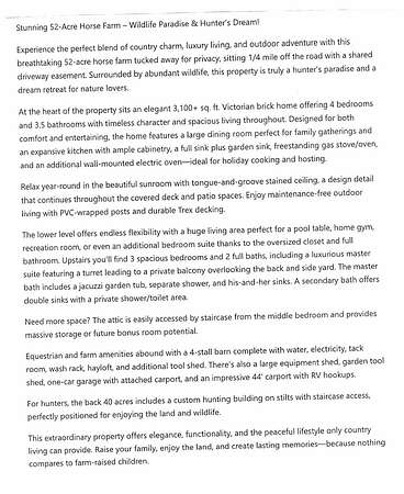 Est $8,888/moHome & 52.6 Acres! 4 stall barn with electricity. Great for those that entertain family & friends: Kitchen has 2 ovens, 2 sinks, basement area is finished for a great rec. room area or home theater. Covered porches all around to expand your living area to the outside. Maintenance free exterior! Engineered wood decking, wood has been covered in vinyl, or PVC. Wildlife abounds on the 52 acres!