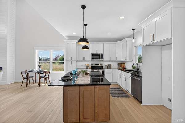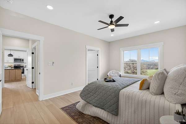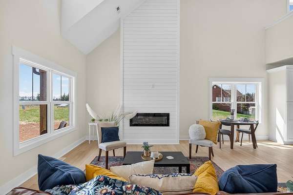Step into modern comfort with this beautifully designed Legacy Shed Dormer model featuring 3 bedrooms and 2.5 bathrooms. The open-concept floor plan offers a spacious living area highlighted by an electric fireplace, perfect for relaxing or entertaining. Enjoy stunning mountain views while you unwind on the private back patio surrounded by peaceful scenery. The chef-inspired kitchen features a large island, abundant cabinet space, and an open layout ideal for everyday living. The main-level primary suite includes a walk-in closet and en-suite bathroom for added convenience. Upstairs offers two additional bedrooms, a full bathroom, and a versatile loft space perfect for an office, guest area, or media room. Thoughtfully designed and move-in ready this home blends modern style with serene living.