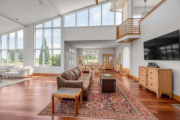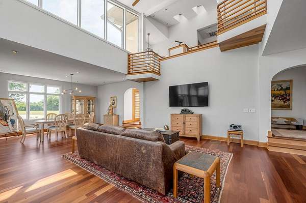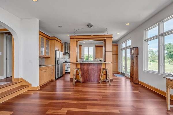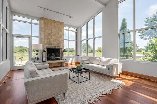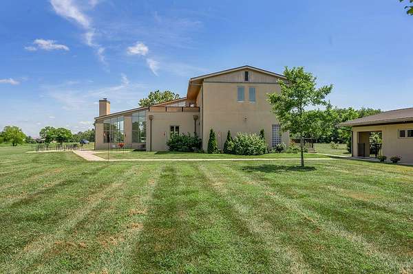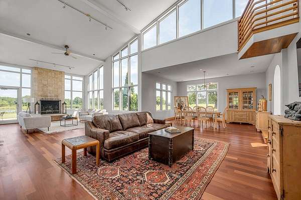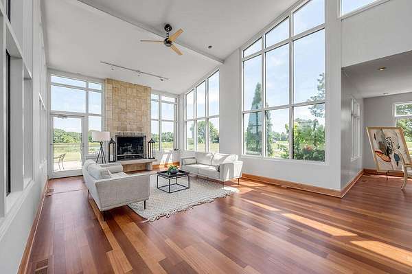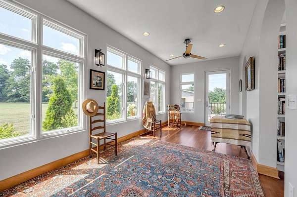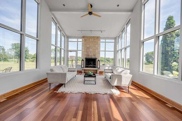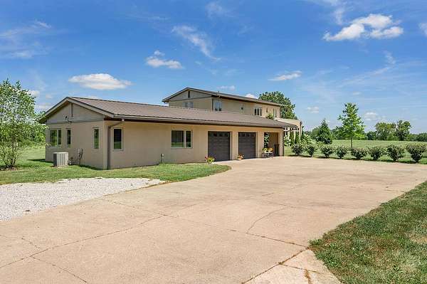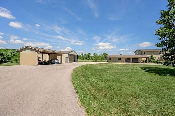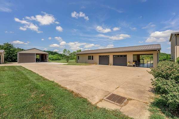 Discover a truly exceptional property in the heart of Kentucky's Bluegrass region-a modern, light-filled main residence overlooking a private 14-acre lake, set on 79 acres of rolling, picturesque land. Accessed through a gated entrance and a long, tree-lined driveway, this peaceful and private retreat is perfect for those seeking luxury, serenity, and natural beauty. The main home features an open-concept floor plan ideal for entertaining, with expansive patios that extend the living space outdoors. High-end finishes include Brazilian cherry and tile flooring, custom Birdseye maple trim, and top-of-the-line appliances, all thoughtfully selected to enhance comfort and style. In addition to the main residence, the property includes a 770-square-foot guest house, a detached two-car climate-controlled garage with a 492-square-foot efficiency apartment, a 30' x 54' equipment building, and an 18' x 30' three-bay open shed equipped with 30-amp RV hookup and water. A separate ore house and a gravel boat ramp provide convenient access to the lake, making this property not only beautiful but also functional. Nestled in the middle of horse country, this rare offering combines refined living with the tranquility of nature-an ideal forever home.