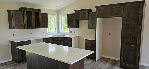 2.69 Wooded Acre Lot overlooking Dahlia Lake across Dahlia Street. A great mix of multiple pine, birch, and oak trees. 2 blocks from Long Lake and close to the East side Public Landing. Plenty of room for a large pole building and plenty of seclusion. Home has 2405 sq. ft. finished, with 4 bedrooms and 4 baths. Home features custom alder cabinets, vaulted ceilings, 9 foot ceilings in 3rd level. Granite counters, kitchen island, stainless steel appliances, master bath with dual sinks and a separate soaker tub and walk in shower. All bedrooms have a walk in closet. Front porch and wood lockers in entry. 3rd level has bar built in with fridge and water. 4th level has 730 square feet of unfinished area, could be 2 more bedrooms or additional entertainment room.