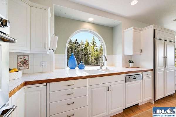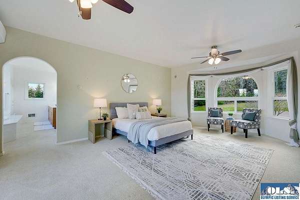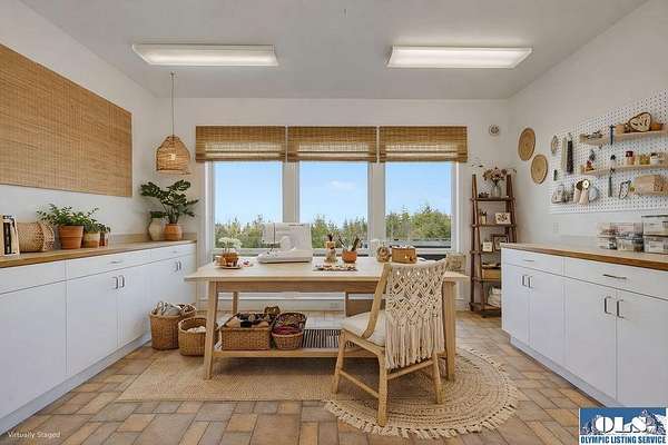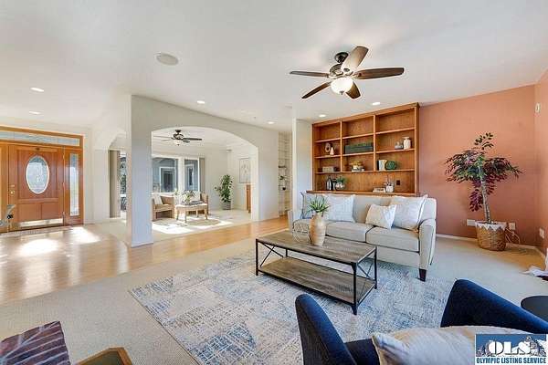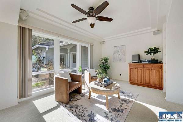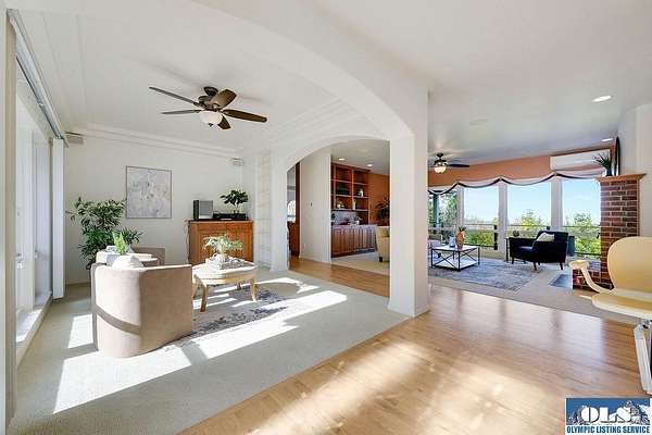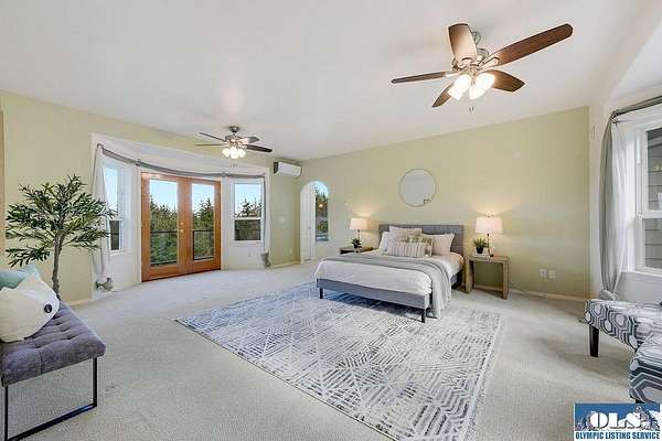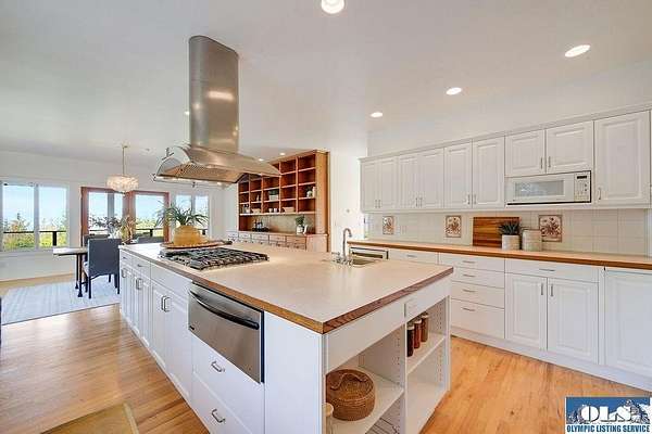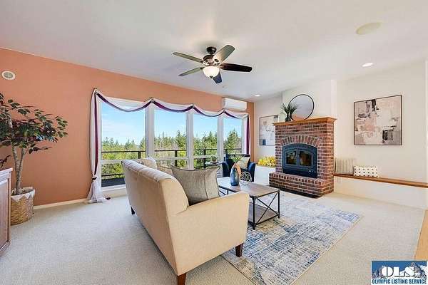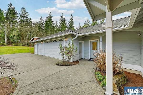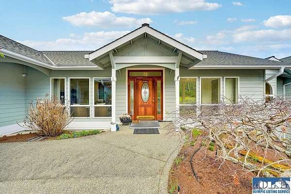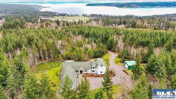 Privacy abounds at this remarkable estate, ideally located between Port Townsend & Sequim, showcasing sweeping views of the Cascade Mtns & the Strait of Juan de Fuca. Pass through the gated entry, follow the paved driveway upward: the setting unfolds—culminating in a majestic residence perfectly positioned at the top of the hill to capture light, views & serenity. Designed for comfort & flexibility, the home offers the ability to live entirely on the main level as upon entry you’ll find the kitchen, DR, LR, office, & primary BR w/ensuite BA, thoughtfully arranged for effortless living. Expansive windows frame the surrounding landscape & water views. The spacious, user-friendly kitchen is the heart of the home, featuring: generous center island, walk-in pantry & seamless connection to the dining area. Just beyond, a covered deck wraps around the view side of the home—creating exceptional indoor-outdoor flow & the perfect vantage point for enjoying the mountains, water & ever-changing skies. The LL provides addl bedrooms & flexible space ideal for guests, live-in assistance or potential conversion to an ADU. Outside, the cleared grounds feel like a park, while surrounding trees provide a natural buffer & exceptional privacy. An attached oversized two-car garage, addl carport, & detached shop further elevate the functionality of this impressive property. A rare opportunity to enjoy views, privacy & flexible living—where convenience meets quiet luxury in an extraordinary setting.