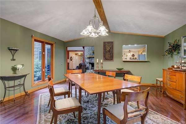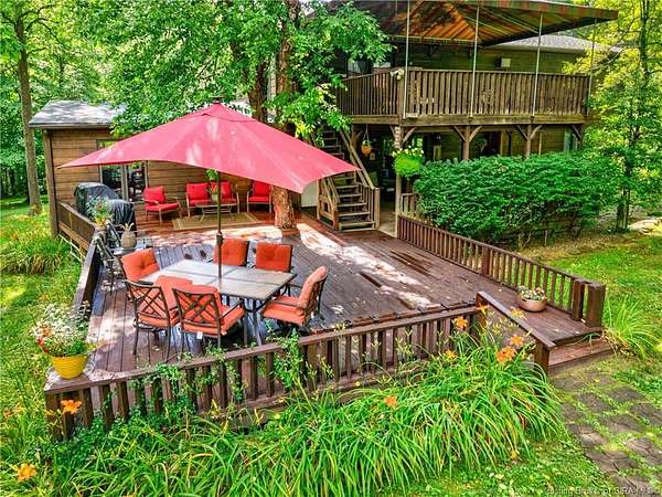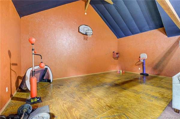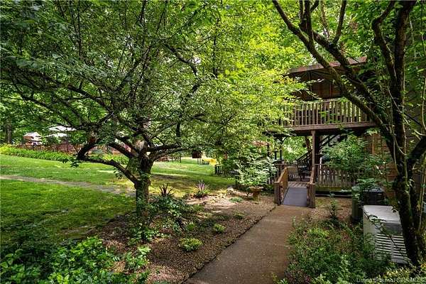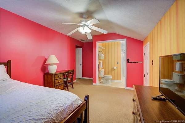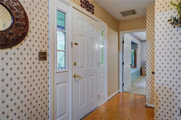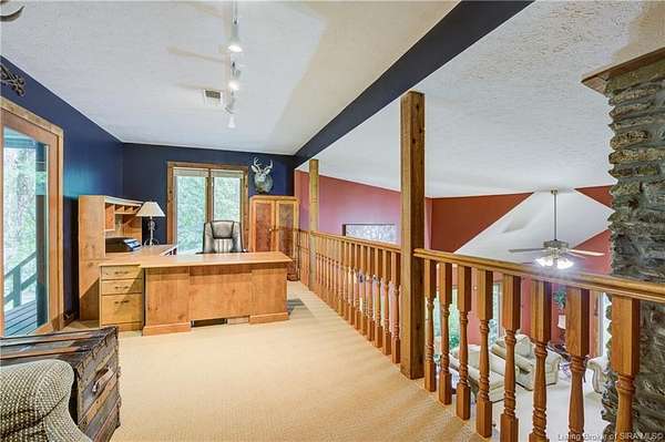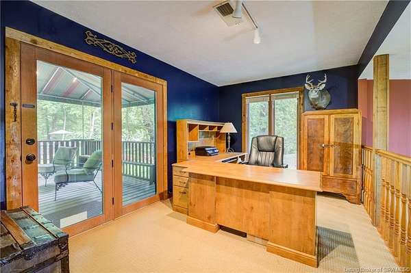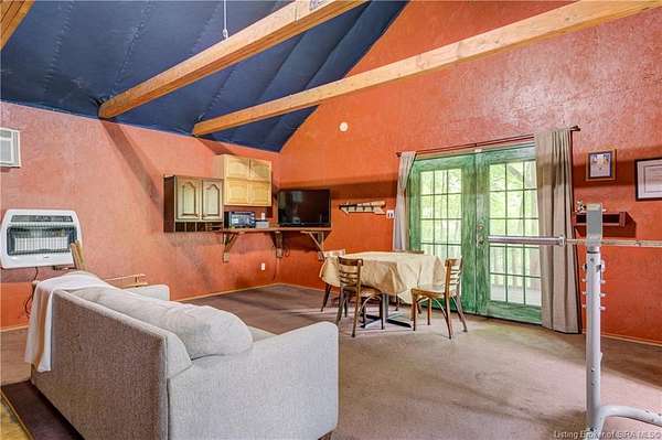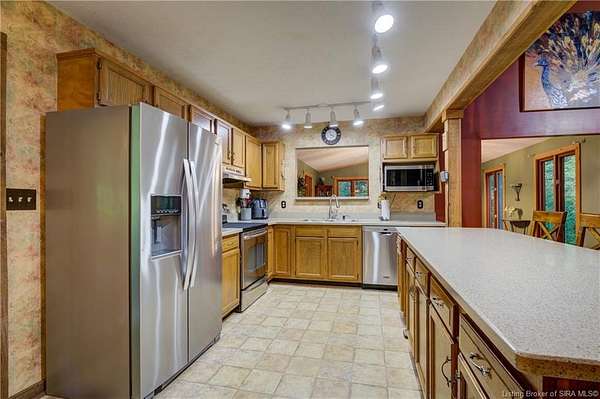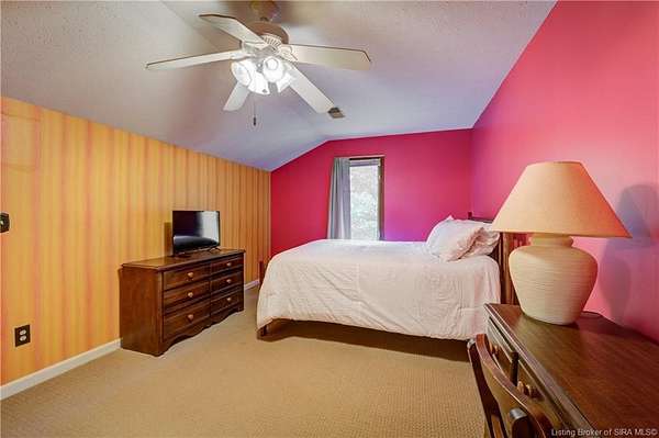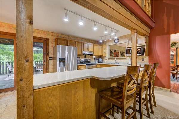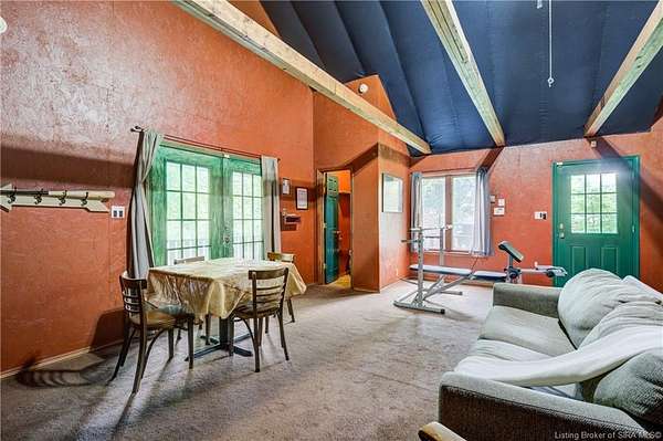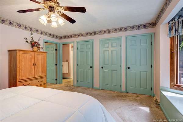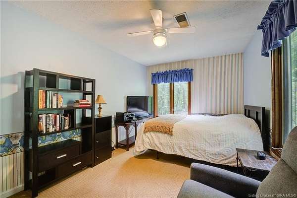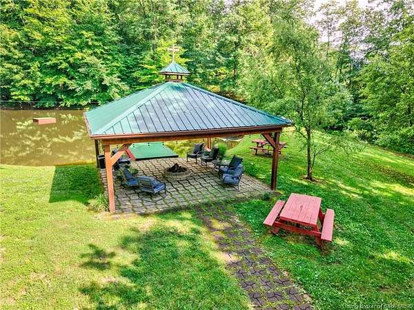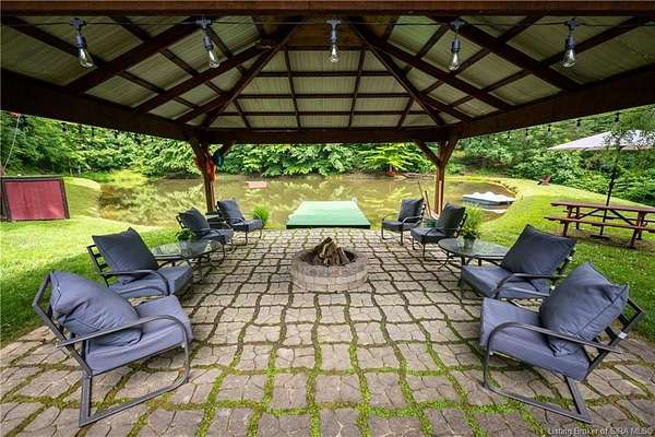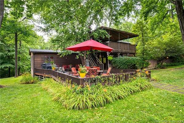 Tucked away on 8.83 +/- pristine wooded acres, two miles from Sherman Minton bridge, Angel Hill as it is affectionately known is a one-owner sanctuary surrounded by nature, yet close to everything. 1.5-story red cedar & creekstone home offers 2,797 square feet of thoughtfully designed living space w 3 bedrooms & 3.5 baths. The open floor plan effortlessly connects the kitchen, dining area, & family room, creating an inviting space for both daily living & entertaining. At the heart of the home, a striking creekstone fireplace adds warmth, charm, & rustic elegance. The primary suite is a peaceful retreat featuring a cozy window seat overlooking the scenic property, a full bath w double vanities, w an adjoining sitting/TV room. A versatile loft area provides flexible space for a home office, playroom, or reading nook, while two additional bedrooms, (2nd suite) & additional full bath comfortably accommodate family/guests. Outdoor living is where Angel Hill truly shines. Enjoy multiple decks w views of the surrounding woods, a pool, a 1/2-acre pond w zip line, Wooded Trails, 720 sq ft RecHut, 3 car garage & full house generator. BY APPOINTMENT ONLY . Sq ft & rm sz approx.