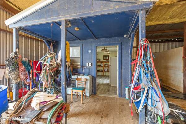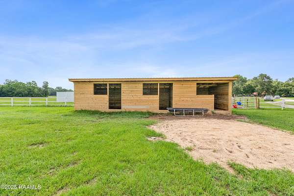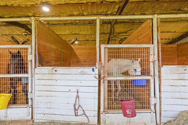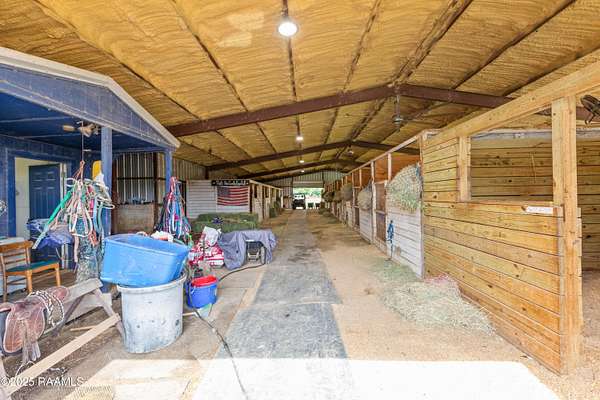 Are you searching for a turn-key horse farm? Look no further! This 36-acre mini-ranch features several amenities that must be seen to be appreciated. These facilities include a cottage-style home that has recently been renovated, exercise track around the pond, training track with 4-horse starting gate, barn, roping arena, horse walker, and round pen. The 60'x100' enclosed steel barn contains 23 horse stalls, a feed/tack room, and two wash racks. The barn is on its own 200-amp main, has 2 ''Big Ass Fans'', LED lights and a security & surveillance system. The 2-bedroom home has recent upgrades that include interior and exterior paint, new HVAC (2022), on-demand water heater, and a security system. Additional home renovations include new flooring, kitchen cabinets with granite counter tops, new appliances, electrical and plumbing upgrades, custom shower in bathroom and a bathroom added in the bunkroom off of the carport. The property is completely fenced and divided amongst the 3 paddock sheds. No need to fret over nightfall in the 150'x240' lighted arena equipped with roping boxes, roping chutes and stripping chute. Nearby you will find the 60ft (diameter) round pen for your livestock. The large pond has a gradual slope on the house side and is 15-deep at the center. It also has an overflow pipe installed on the backside. Easily keep up with the grounds maintenance with the tractor that remains with the property. Are you ready to expand a current hobby or business or begin a new venture!? Schedule your tour today!