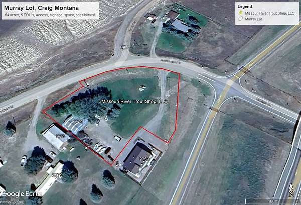 Outdoor enthusiasts can't escape the allure of Montana's Missouri River Canyon. Holter Lake and the placid Missouri River below it, draw recreationists from near and far. If you're looking for a prime commercial location in this magical area, you just found it. Located at Exit 234 in Craig, this .94 acre interstate lot includes just what you need - access to fly fishermen getting ready for their day, pleasure floaters launching their rafts at the boat ramp and motor boaters exiting the highway on their way to Holter Lake, and more. Recreation Road, two-minutes away, opens the area to everyone. It gets even better. This lot is poised for easy development - commercial access, electricity, well and sewage are all installed. The lot includes sewage discharge sufficient to build 5 single-family homes (5 EDU's). Only 1 EDU is subject to a $45 monthly fee. The remaining 4 EDU's may be used by the owner at no charge for 29 years - a present value of over $100,000. The existing well is suitable for a single family home. It may need to be modified depending upon the business use of the property. Facilities include a 30' x 40' two-story metal storage building with an adjoining workshop and a well pump house. Craig has served as a central trading post catering to the area's needs since 1888. Fly fishing contributes an estimated $75 Million annually to the local economy (FWP 2021). Craig continues its tradition and caters to most of these anglers. Holter Lake Campground sees 50,000 visitors a year and up to 350 boat launches a day. Craig is a two-block town with direct exposure to all of these recreationists and more. No comparable properties are available in Craig or the surrounding area. Don't wait. Visualize your dream business. Submit your building plans. Build. Enjoy. Possible Owner-Carry!