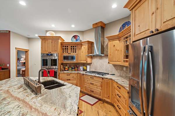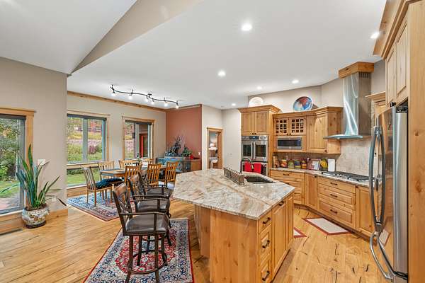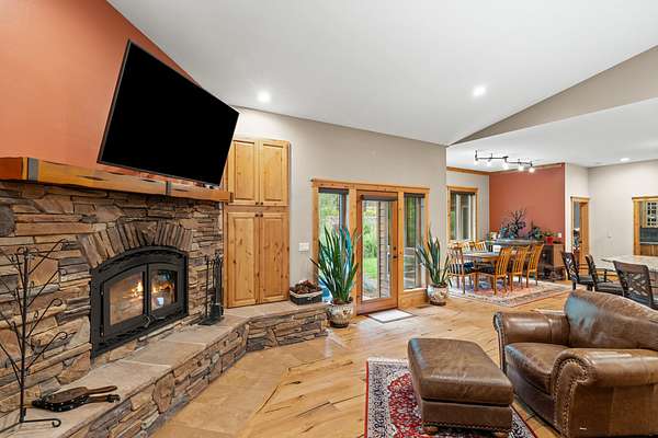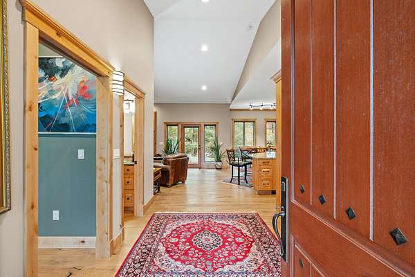 The residence showcases refined craftsmanship across 2,823 sq ft, offering 3 bedrooms and 2.5 bathrooms, and featuring knotty alder woodwork, custom built-ins, stone fireplaces, sound-dampened spaces, and heated bathroom floors. Advanced mechanical systems--including backup power, whole-house filtration, and robust infrastructure--ensure effortless modern living. Complementing the home are a five-car garage, an expansive multi-use building with stalls and storage, curated gardens with raised beds, mature landscaping, and a custom concrete root cellar--together creating a turnkey luxury estate that blends comfort, elegance, and self-sufficiency.