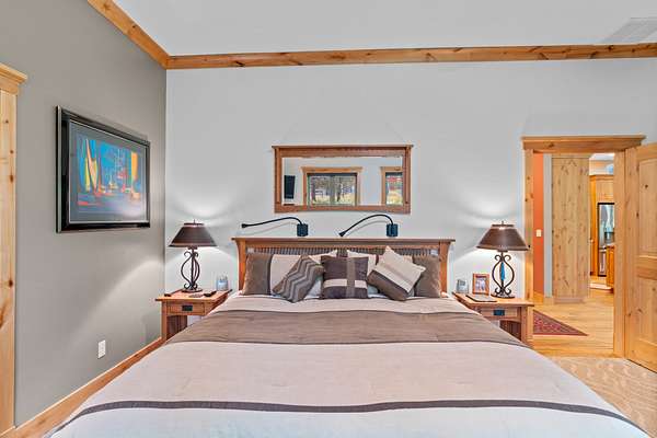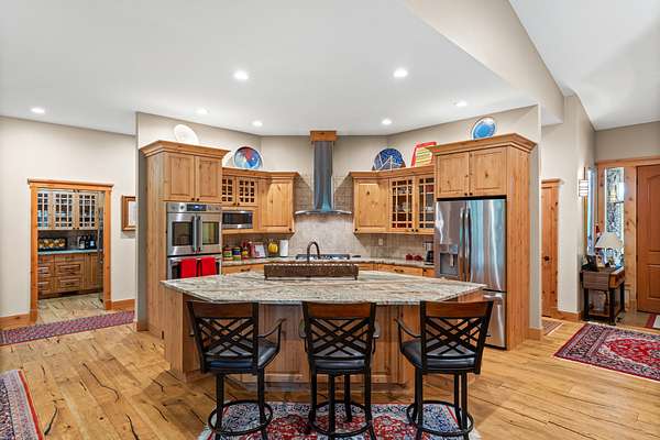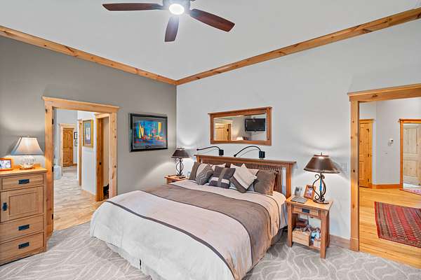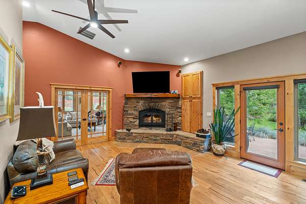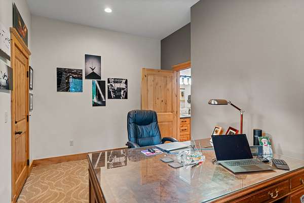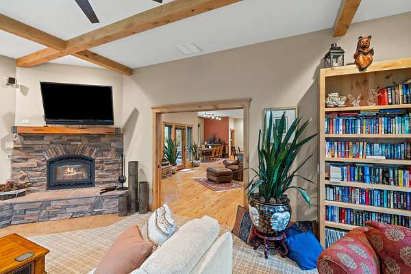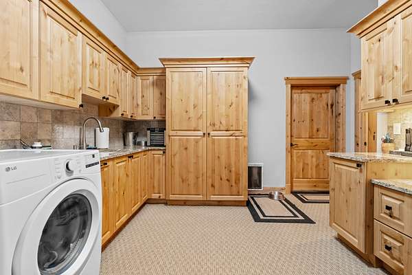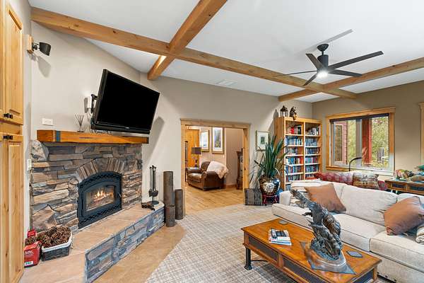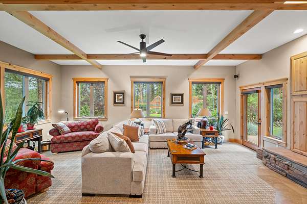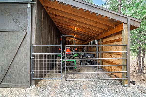 The acreage has been professionally fire mitigated and fenced, featuring multiple pastures, a barnyard and corral with direct barn access, and mature landscaping throughout. The expansive multi-use building/barn with stalls and abundant storage complements the functional layout and versatility of the property. The custom home blends handcrafted finishes with modern comforts, including stone fireplaces, sound-dampened spaces, heated bathroom floors, backup power, whole-house filtration, and on-demand hot water. An expansive five-car garage, offering three bays with heated floors and integrated drainage--thoughtfully designed for snow melt and year-round functionality in mountain conditions. Extensive raised garden beds, mature landscaping, and a concrete root cellar round out this well-designed property--ideal for those seeking comfort, functionality, and sustainable living in a premier outdoor setting.