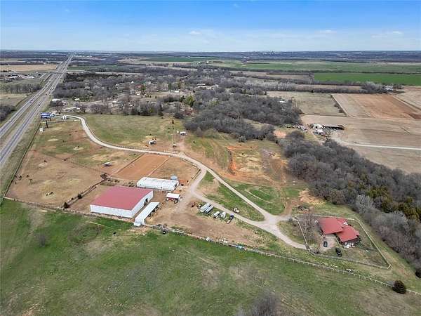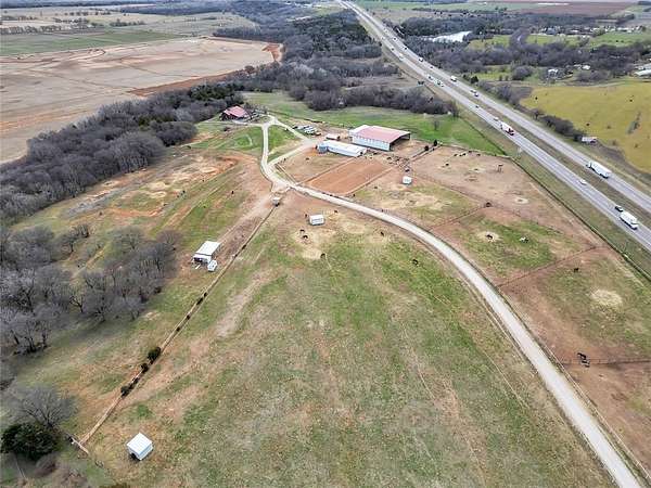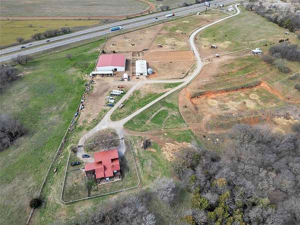 The possibilities are endless with this property. Situated in a growing area with I35 frontage, just off the Ladd Rd exit, and the possibility of more on/off ramp as I35 expands. Spanning 23.38 acres, it encompasses a 2890 sq ft house built in 1975 and multiple structures, including 2 barns. Zoned IP with established utilities, it offers flexibility. Additionally, it features an owned billboard that can generate up to $1100/month in revenue and receives $500/month in dividends from Lamar for the lease of the other billboard. Currently, the owner resides in the house, operating an equestrian business. There's ample opportunity to repurpose the house for commercial use, adding to the property's potential. 8 minutes south of Norman.