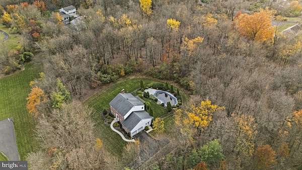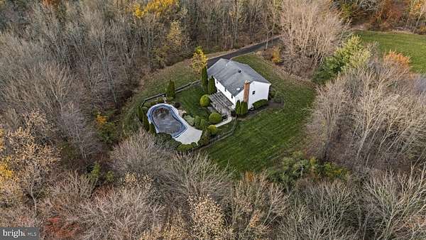 Tucked away on a secluded flag lot within the award-winning Central Bucks School District, this timeless 4-bedroom, 2.5-bath Center Hall Colonial offers the perfect blend of privacy, comfort, and classic Bucks County charm. Set on 4.5 acres of serene, wooded surroundings, the property feels like a private retreat yet remains just minutes from shopping, dining, and major commuter routes. Step inside to a bright and welcoming foyer that opens to spacious formal living and dining rooms, both featuring gleaming hardwood floors, crown molding, and chair rail accents. The inviting family room, complete with a gas fireplace, creates a warm gathering space with easy access to the backyard-perfect for entertaining or quiet evenings at home. The sunlit kitchen and breakfast room overlook the backyard and offer plenty of space for everyday meals and connection. Upstairs, you'll find four generously sized bedrooms, including a private primary suite, along with a full hall bath. Outdoor living truly shines here. The professionally landscaped grounds, with especially mature landscaping in the rear, surround a sparkling in-ground pool, creating a tranquil setting for summer enjoyment. Additional highlights include a full unfinished basement, a two-car side-entry garage with attic storage, and a long driveway with plenty of parking. Recent updates provide peace of mind for years to come: Brand new HVAC system (2025) Roof (2015) Water heater (2020) This beautiful property combines classic Colonial design, modern updates, and a peaceful, secluded setting-a rare find in the heart of Warrington.