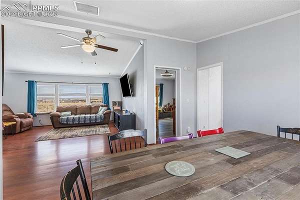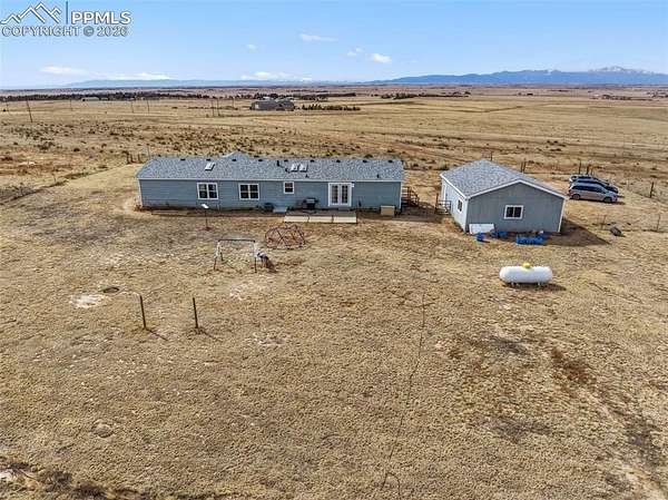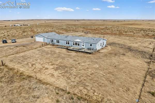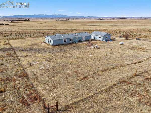 Escape to peaceful country living with this charming 4-bedroom, 3-bath Ranch-style home set on 40 beautiful wide-open acres. Perfectly zoned for horses and thoughtfully designed for those who value space, privacy, and scenery, this property offers panoramic Rocky Mountain Views and stunning views of Pikes Peak right outside your door. Step inside and feel instantly at home with the open, welcoming layout filled with natural light and wood laminate floors flowing seamlessly throughout the main level. Custom ceiling fans with built-in lighting in each bedroom, the living room, and the family room adds both comfort and style throughout the home. The spacious primary suite is your personal retreat, complete with a walk-in closet, French Doors to a spacious adjoining five-piece bath. An additional set of French Doors opens to a private sitting room or ideal home office space. The bright and airy kitchen features two skylights, stainless steel appliances, abundant cabinetry, and generous counter space-perfect for both everyday living and entertaining. In the family room, French doors lead out back to a large 12x20 concrete patio where you can relax, entertain, and soak in the peaceful surroundings. An alarm system adds peace of mind, while the oversized detached two-car garage provides plenty of room for vehicles, equipment, and recreational gear. If you've been dreaming of wide-open skies, mountain views, and the serenity of country life-this is your opportunity. Come experience it for yourself and schedule your private showing today!