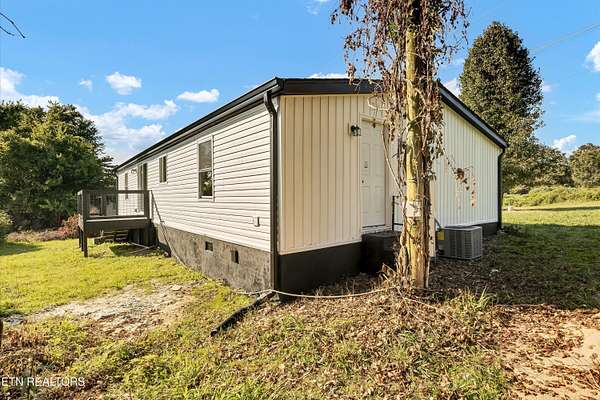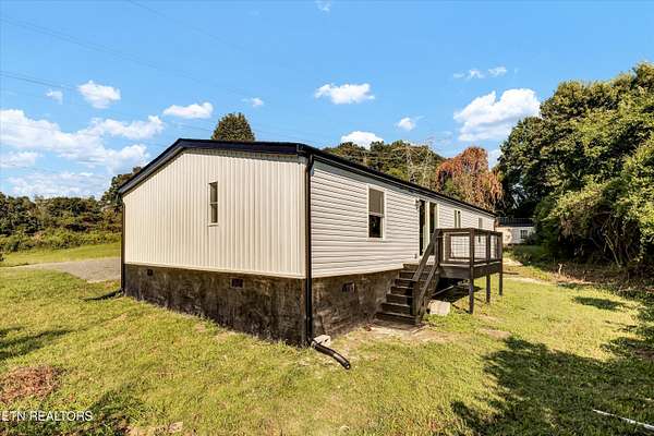 This completely renovated 3-bedroom, 2-bathroom mobile home on a permanent foundation sits on more than 2.5 peaceful acres in a quiet neighborhood, zoned for Hardin Valley Middle and High Schools. Offering both comfort and practicality, the home combines modern upgrades with the benefits of country living while remaining convenient to shopping, dining, and main roads. Recent updates include a brand-new roof, siding, windows, HVAC system, and a spacious new deck, giving the property a fresh, move-in-ready appeal. Inside, the home features large rooms with updated flooring, fresh paint, and modern fixtures throughout. The kitchen offers plenty of cabinet space, updated appliances, and room for a full dining setup. The primary suite includes a walk-in closet and a fully renovated bathroom with a double vanity and stylish finishes. The two additional bedrooms are generously sized, with an updated second bathroom nearby for convenience. A standout feature of this property is the large barn building at the back of the lot. Fully equipped with electricity, it is perfect for a workshop, storage, or hobby space, with room to adapt it to your needs. The acreage provides ample outdoor space for gardening, recreation, or simply enjoying the privacy of a larger lot. The property includes an easement on the driveway for access, and there is also enough space to build your own private driveway if desired-giving flexibility for future improvements. With its permanent foundation, this home offers stability and financing flexibility not always available with manufactured properties. The extensive renovations ensure peace of mind for years to come, while the spacious layout and acreage create opportunities to personalize and expand.