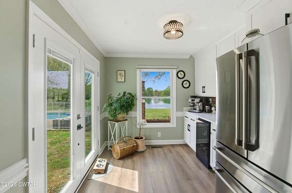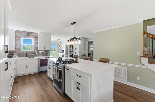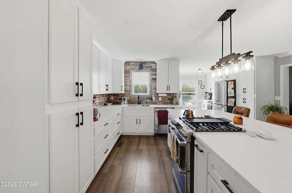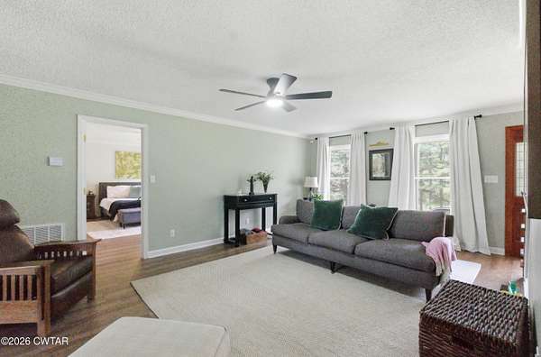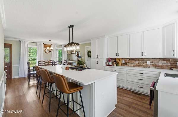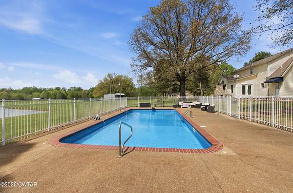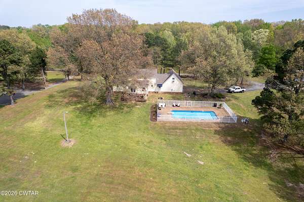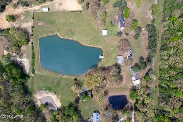+-9 acres comes with this 4 BR 2.5 Ba home with stocked lake (with patio/dock), inground salt water pool; 4 bay detached workshop; outdoor courtyard patio with fireplace; remodeled kitchen in 2025, updated master bath with stand alone tub and tile shower, double vanity. Walk in closet in master. Also on main level is sunroom off the greatroom. 2 bedrooms upstairs with a 4th room (bonus, no closet) off the back stairway. Enjoy the outdoors on the 9 acres, theres swimming, workshop (hobby opportunities); fishing in the stocked lake; relaxing by the masonry outdoor fireplace; sitting on the dock by the lake enjoying the sunsets. Sip coffee and enjoy the quiet mornings on your covered front porch. This home offers it ALL. Don't miss this great property in the Crockett County area. Only 15 min to private schools in Jackson. Call for more details or viewing today Info deemed accurate, not warranted by co, seller or agent. Sq ft and taxes to be determined by appraiser and assessor.