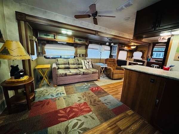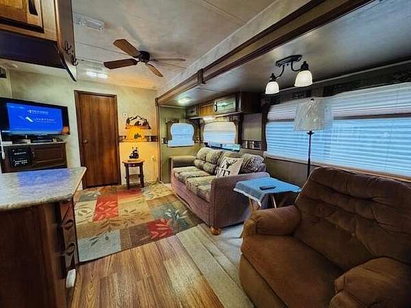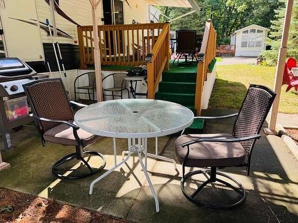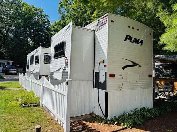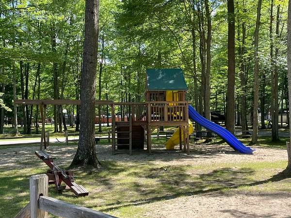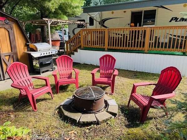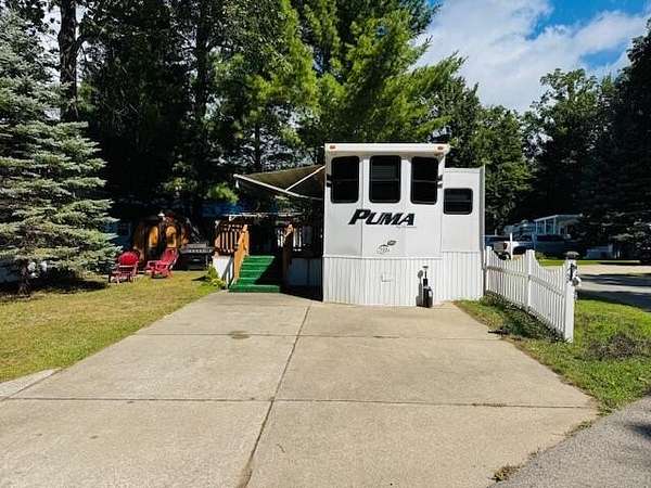 Sandy Oak RV Resort! This full hook-up lot has a large concrete pad and 2 parking spots. Plus, a 2014 Palomino Puma Destination 41' that's fully furnished with a new A/C unit! This unit offers 2 slide outs with a queen master bedroom, sofa sleeper and booth conversion for sleeping up to 4-5 people. Bonus...large deck, shaded patio area and a shed for additional storage needs! Resort offers a clubhouse with an indoor pool, hot tub, fitness room, and walking trails .HOA fee includes your water, internet/cable, lawn care and snow removal. Property is located near ORV trailhead & 2 boat launches on Houghton Lake. Call today to view this perfect getaway!