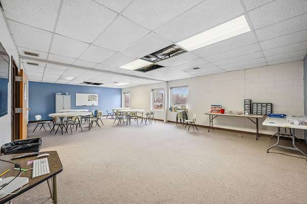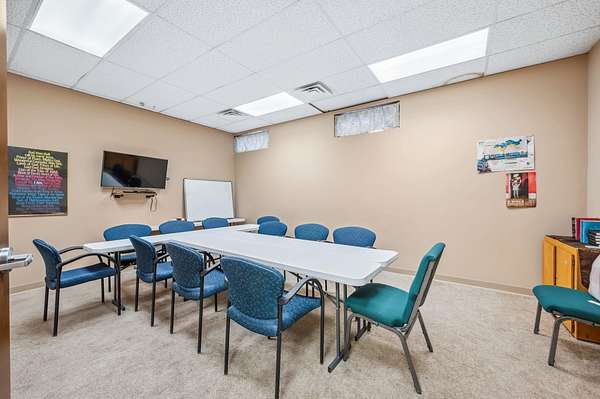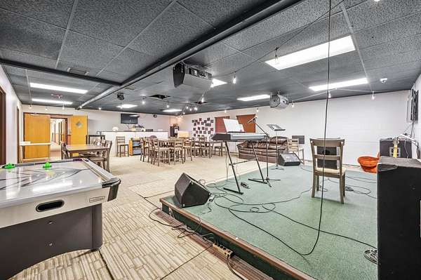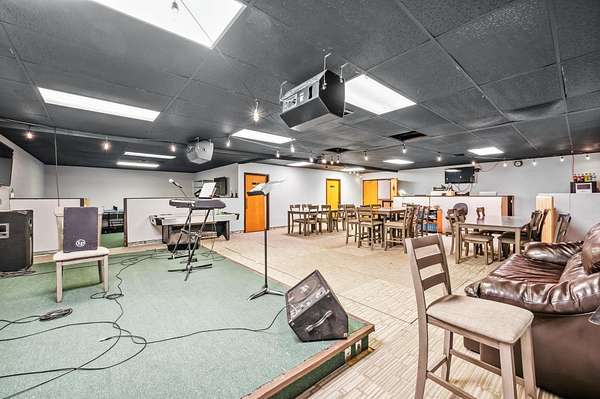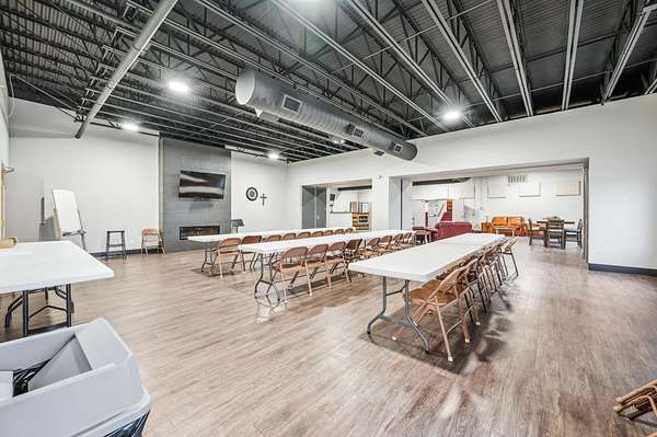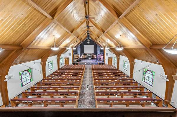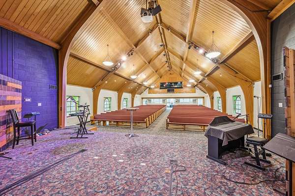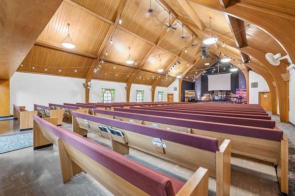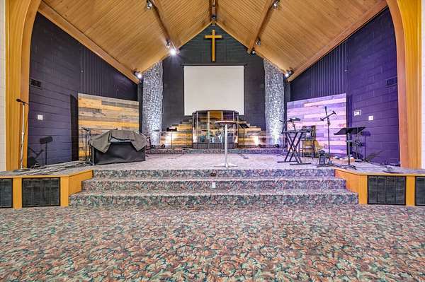 This is definitely more than just a Church. This building is a must see. There are over 20,000 sq. ft. of classrooms as it once housed a preschool. These could be turned back into classrooms or used for offices. The church has two LARGE fully stocked an operating kitchens. (one kitchen upstairs and one down). There is also a library room in the basement that is not pictured. There is also an elevator. The church boasts an awesome sized gymnasium with two separate locker rooms (one male one female) each with two showers that run off a newer tankless hot water heater. There are 11 bathrooms in the building. The beautiful sanctuary (w/ original stained glass windows) has all the updated sound equipment ( that can stay with the right offer). There is a huge multi purpose room that is currently being used a coffee / lounge area. There is a super fun fully fenced playground outside area with lots of new equipment. There are two large outbuildings as well. The roof is newer as well that the air-conditioning units. This church is FULL of furniture in EVERY room and all is negotiable with the right offer. You don't want to miss this one!! Full ADA access with lift to get into sanctuary.