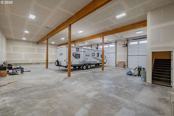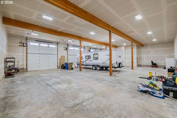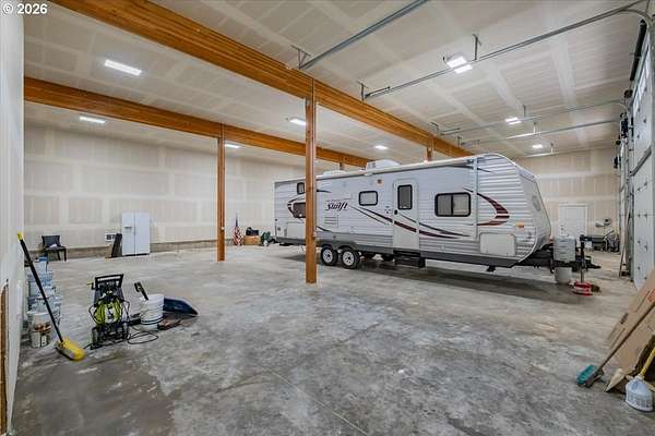 Est $3,711/moFOSTER LAKE VIEW opportunity! 50x70 RV Sized shop with 3 - 14x14 auto roll-up doors, heated & insulated + fully finished living quarters above featuring tall ceilings, island kitchen, LVP flooring, 2 bedrooms, full bath, walk in pantry, laundry hookups & views from every window. Step onto the covered deck & take in breathtaking views of Foster Lake & the surrounding mountains. Situated on 2.56 acres with room to build a home or bring your animals. Work, live, & enjoy it all in one incredible setting.