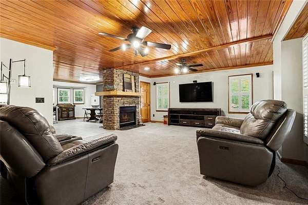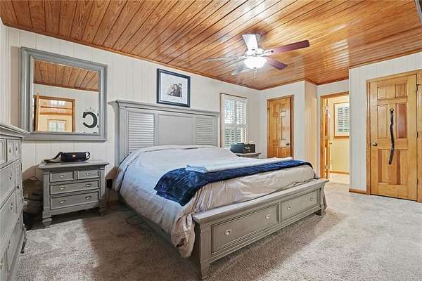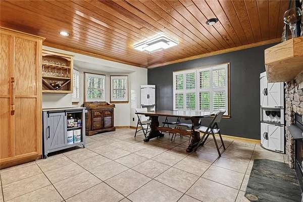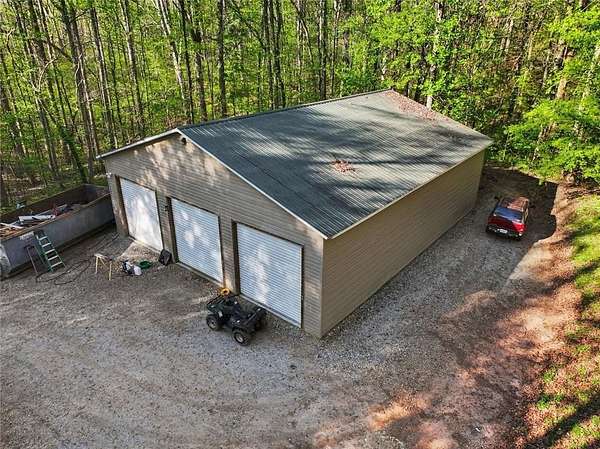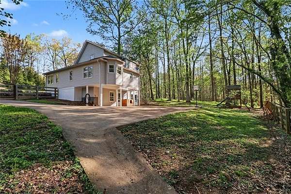 This is the one you've been waiting for-an exceptional opportunity to own nearly 4.5 acres of serene, wooded privacy paired with a charming farmhouse-style home and an incredible dream workshop. Nestled on 4.49 picturesque acres, this inviting 3-bedroom, 2.5-bath home welcomes you with a classic rocking chair front porch-perfect for relaxing and taking in the peaceful surroundings. Inside, you'll find a warm, thoughtfully designed space featuring tongue-and-groove wood ceilings, custom-built kitchen cabinetry, and an open-concept layout filled with natural light, enhanced by large windows and plantation shutters. The spacious great room flows seamlessly into the kitchen and dining/keeping area, anchored by a stunning double-sided brick gas-log fireplace-ideal for enjoying cozy evenings from either space. The main-level primary suite offers comfort and convenience with a private bath, while an additional half bath serves guests. Upstairs, two additional bedrooms with gleaming hardwood floors share a hall bath, complete with a stylish custom barn door. The walk-out basement provides a finished laundry area plus multiple stubbed rooms ready to be customized to fit your lifestyle-whether you envision a home gym, office, or additional living space. Step outside to a fenced backyard featuring a playground and paved patio-perfect for entertaining, pets, or family fun. Beyond the fence, explore your own wooded retreat with a charming creek running through the property. For hobbyists, entrepreneurs, or collectors, the standout feature is the impressive 40x48 (1,920 sq ft) fully permitted workshop/garage. Equipped with 220V power, soaring 12-foot ceilings, a storage platform, and three 10-foot roll-up doors, it easily accommodates up to six vehicles or endless possibilities. A covered metal carport adds even more flexibility for boats, RVs, and recreational equipment. Conveniently located off Hwy 369 between Ball Ground and Cumming, this property offers the perfect balance of privacy and accessibility, with easy access to schools, shopping, and commuter routes. Recently appraised and inspected, this move-in-ready property delivers space, functionality, and character-an opportunity you don't want to miss.
