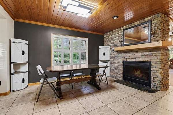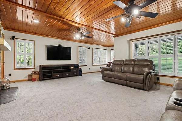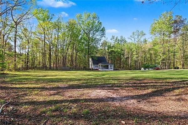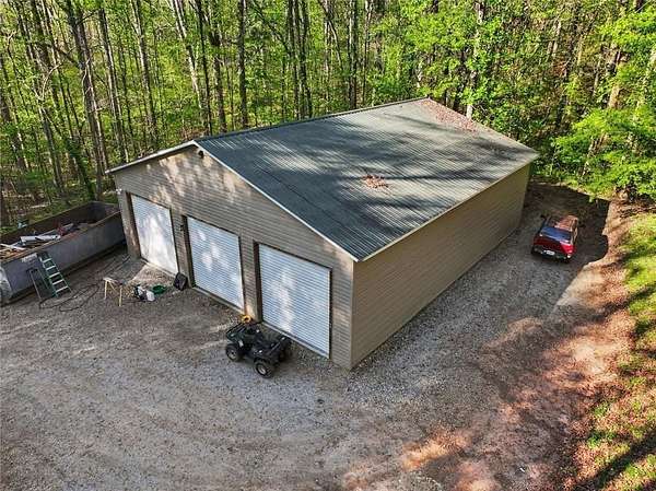 This is the one you've been waiting for-an exceptional opportunity to own nearly 4.5 acres of serene, wooded privacy paired with a charming farmhouse-style home and an incredible dream workshop. Nestled on 4.49 picturesque acres, this inviting 3-bedroom, 2.5-bath home welcomes you with a classic rocking chair front porch-perfect for relaxing and taking in the peaceful surroundings. Inside, you'll find a warm, thoughtfully designed space featuring tongue-and-groove wood ceilings, custom-built kitchen cabinetry, and an open-concept layout filled with natural light, enhanced by large windows and plantation shutters. The spacious great room flows seamlessly into the kitchen and dining/keeping area, anchored by a stunning double-sided brick gas-log fireplace-ideal for enjoying cozy evenings from either space. The main-level primary suite offers comfort and convenience with a private bath, while an additional half bath serves guests. Upstairs, two additional bedrooms with gleaming hardwood floors share a hall bath, complete with a stylish custom barn door. The walk-out basement provides a finished laundry area plus multiple stubbed rooms ready to be customized to fit your lifestyle-whether you envision a home gym, office, or additional living space. Step outside to a fenced backyard featuring a playground and paved patio-perfect for entertaining, pets, or family fun. Beyond the fence, explore your own wooded retreat with a charming creek running through the property. For hobbyists, entrepreneurs, or collectors, the standout feature is the impressive 40x48 (1,920 sq ft) fully permitted workshop/garage. Equipped with 220V power, soaring 12-foot ceilings, a storage platform, and three 10-foot roll-up doors, it easily accommodates up to six vehicles or endless possibilities. A covered metal carport adds even more flexibility for boats, RVs, and recreational equipment. Conveniently located off Hwy 369 between Ball Ground and Cumming, this property offers the perfect balance of privacy and accessibility, with easy access to schools, shopping, and commuter routes. Recently appraised and inspected, this move-in-ready property delivers space, functionality, and character-an opportunity you don't want to miss.
