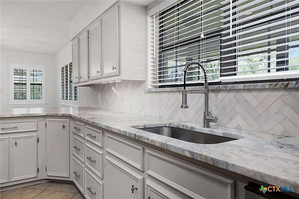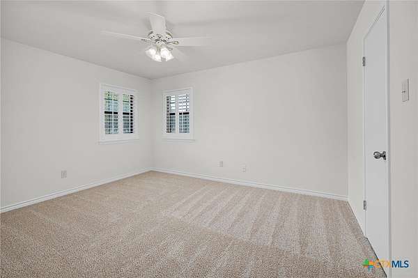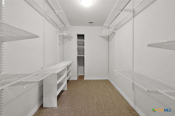 - Attic, Breakfast Area, Breakfast Bar, Built In Features, Ceiling Fans, Custom Cabinets, Kitchen Island, Main Level Primary, Pantry, Primary Downstairs, Pull Down Attic Stairs, Separate Shower, Solid Surface Counters, Tub Shower, Vanity, Walk In Closets, Window Treatments