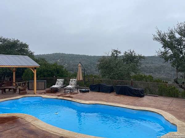 Hill Country lifestyle property in the heart of River Chase. Situated on 3.76 acres at a hilltop location, this single-story home offers sweeping Hill Country views, exceptional privacy, and standout outdoor living. Features include a metal roof, resort-style inground pool, expansive patio spaces, and a fully equipped outdoor kitchen-ideal for entertaining and everyday enjoyment. Inside, the flexible floor plan includes 3 bedrooms, 3 full baths, and a dedicated office/flex space perfect for working from home. Designed for buyers who value lifestyle, views, and outdoor living over sheer square footage. River Chase residents enjoy private Guadalupe River access, clubhouse, fitness center, pools, sports courts, walking track, playgrounds, and more-all just minutes from New Braunfels, Gruene, and Canyon Lake. This is not a "cookie-cutter" home-it's a Hill Country retreat.