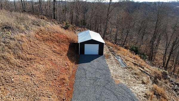 10 surveyed ac w/ CUMBERLAND RIVER & MTN VIEWS. Located in a rural - private - country region of TN. Surrounded by scenic views & wildlife. Home (cabin) of approx 1080 sq ft 1BD/1BA, open concept kitchen - living & dining rooms dcor` in a farm rustic scheme and has dual window air & heat unit. An attached covered & enclosed back porch with a pot belly wood stove. It is an ideal man cave with the stove, fire pit and a TV for those wild boys. Detached metal 18X36 garage with an easy & newly improved gravel driveway. 12X16 utility shed. Circular driveway for easy in and out access. Seller has had a perk test done at another building site for another home or to do a Commercial business with RV's or Camper resort.