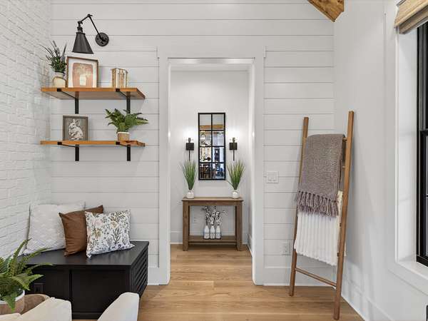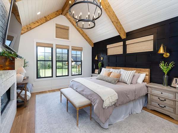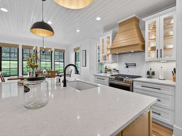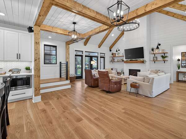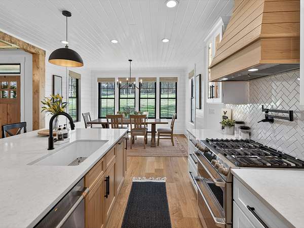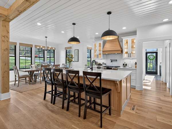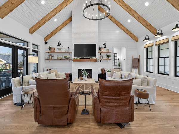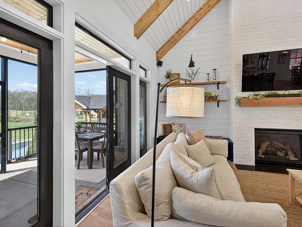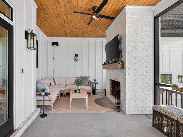 Step inside to an open-concept layout featuring a chef’s kitchen equipped with a gas stove, double ovens, and a convenient butler’s pantry—perfect for entertaining and everyday living. The living spaces flow seamlessly to a screened-in back porch complete with a cozy wood-burning fireplace, creating the ideal spot to relax year-round.