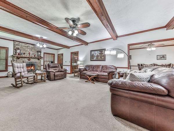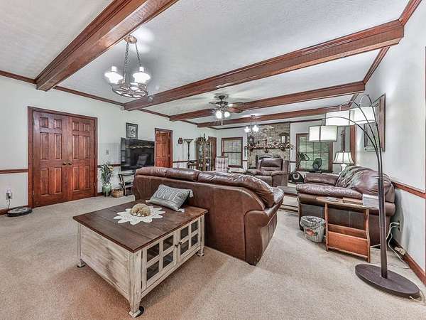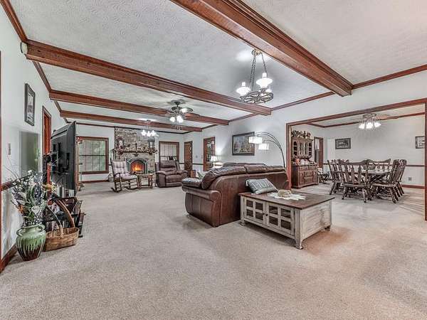 - Beamed Ceilings, Crown Molding, Double Vanity, High Ceilings 9 ft Main, His and Hers Closets