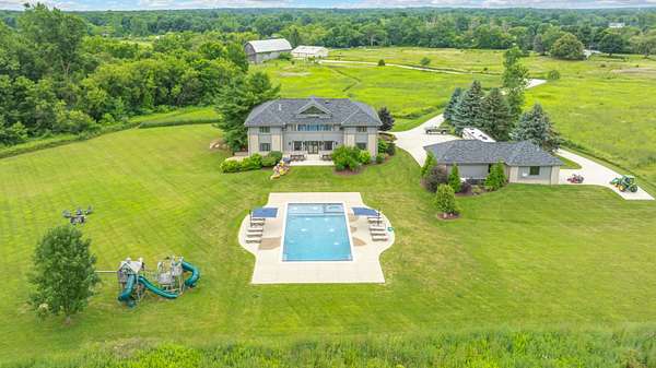 Extraordinary updated estate where luxury, privacy & self-sufficiency meet on 42 acres, bordered by an 85 acre nature preserve. This rare offering includes 7,200 sq ft main home & a fully updated 1,200 sq ft guesthouse (or rental opportunity) just minutes from downtown Ann Arbor. Inside the main residence an updated chefs kitchen to set the tone for upscale comfort. 7 beds & 7 baths, including an updated 1st floor primary suite. Whole home generator. Step outside & experience true resort-style living with your 25x50 in-ground pool/spa, perfect for relaxing or entertaining, while the full RV hookup welcomes long-term guests. You'll also find chicken coop & veggie garden with irrigation & new concrete driveway with gates access, such a seamless indoor-outdoor flow. Agent related to seller.
