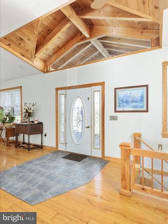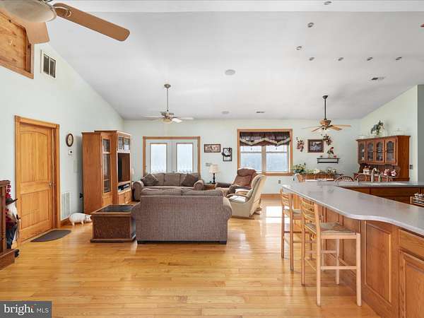 Discover the charm of this custom-built, log-sided rancher, situated on 3.5 acres with access to the Shenandoah River. This well-crafted home offers 3 bedrooms, 3 full baths, and many practical and premium features for comfortable living. The heart of this home is the spacious kitchen, thoughtfully designed with custom oak cabinets featuring pull-out drawers, durable Corian countertops, a double oven, and a gas cooktop. The living area invites you to relax by a cozy gas fireplace, set against the backdrop of soaring 10-foot ceilings and 36-inch wide doors, ensuring both elegance and accessibility. Convenience is key with a main-level laundry room, while the partially finished basement offers added flexibility, complete with a full bath and tubing in the floors ready for heated flooring installation. The home is equipped with three separate heating systems for ultimate comfort and efficiency: one for the main living areas (including the kitchen, living room, and primary bedroom), another for the two additional bedrooms and hall bath, and a third exclusively for the lower level, each with individual controls. This property is equipped with two 220-panel boxes and an attached one-car garage. Additionally, it features a detached 42x60 steel building with a 15-foot door, a 10-foot door, a half bath, and 400-amp electric service-perfect for a workshop, car enthusiasts, ample storage, or a variety of other uses. The personal items will be removed before closing. Take in the surrounding mountain views and enjoy the unique access to the Shenandoah River, perfect for outdoor activities or simply enjoying nature. This home blends rustic charm with practical design, offering a fantastic opportunity for those seeking space and functionality.