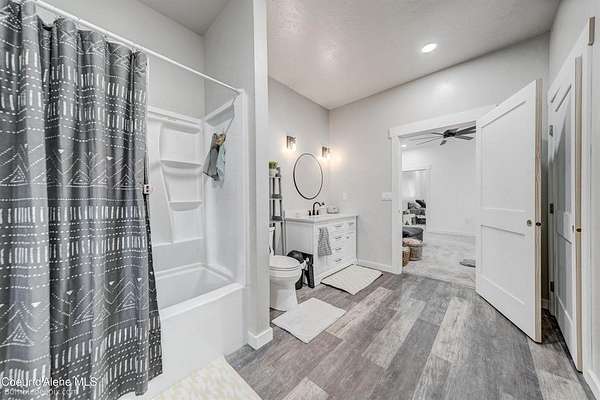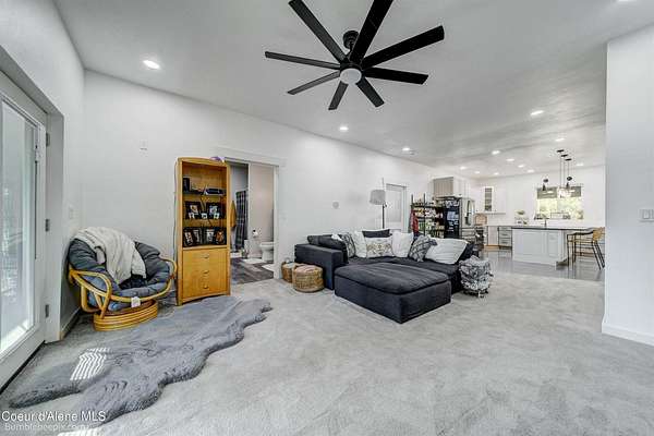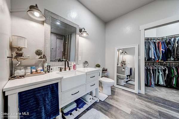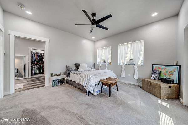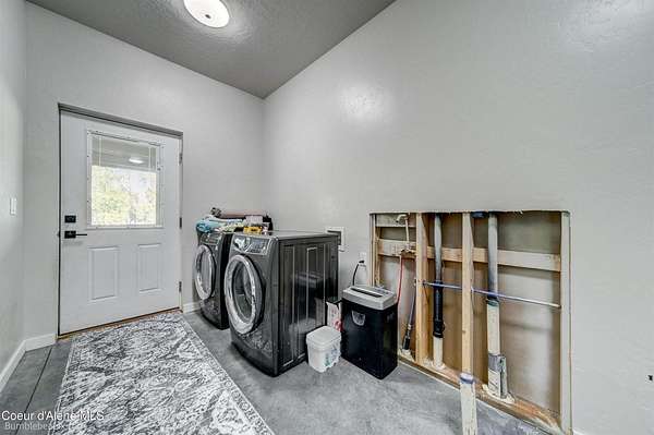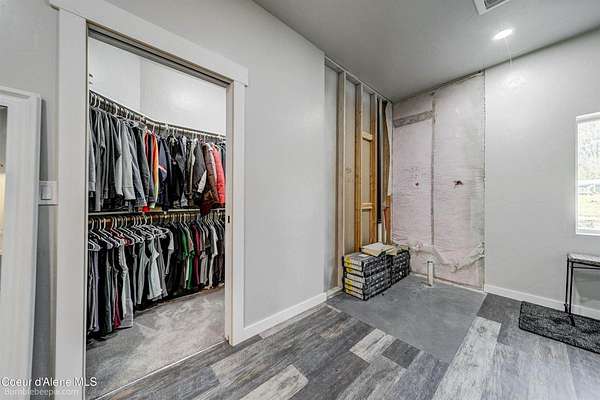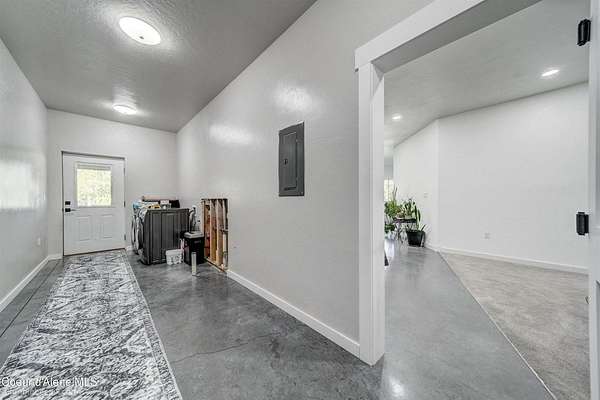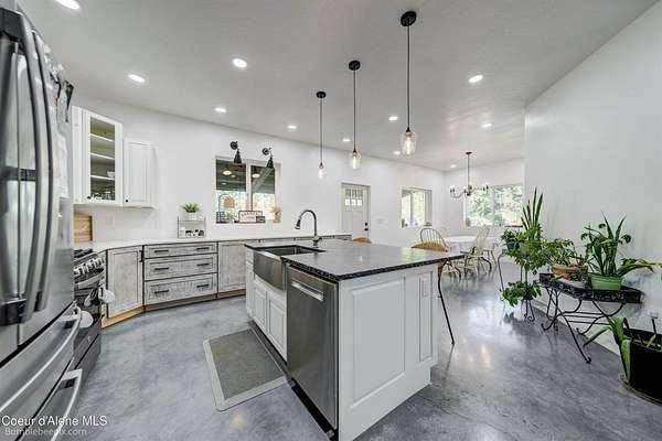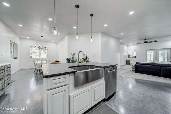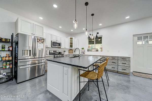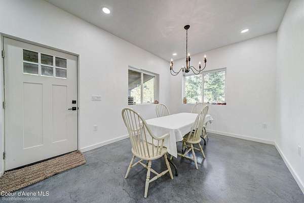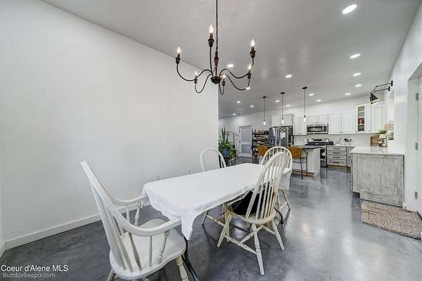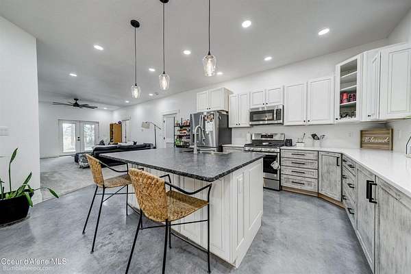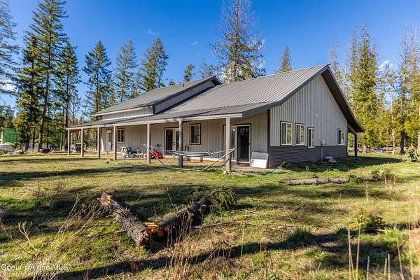 Modern 2022 Barndominium on 5 private acres with a serene pond and mature timber. This approximately 1800 sq ft high-performance home features superior spray foam insulation and radiant floor heating for unmatched efficiency and silent comfort. Inside, enjoy an industrial-chic aesthetic and polished concrete floors in the kitchen. The chef's kitchen boasts a granite counter top island, stainless appliances, and a premium Bosch dishwasher. The massive primary suite includes a custom walk-in closet. Home has on demand water heater for your convenience. The oversized attached garage/shop features, finished walls, and LED lighting. Hundreds of square feet of wraparound covered porch with exposed wood rafters provide year-round outdoor living space. Adjoining additional 5 acres available to purchase! Low-maintenance metal exterior and move-in ready. Schedule your private tour today! Master bath does not have a shower, however it is plumbed and ready for you to make it what your dream showe