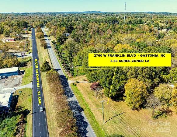 Prime 3.5+/- Acres of I-2 Zoned Land - West Gastonia / Franklin Blvd-Hwy 74 Corridor located in the rapidly developing Franklin Blvd / Hwy 74 corridor of West Gastonia, near the base of scenic Crowders Mountain. The property offers outstanding accessibility with three nearby I-85 exits within 1-2 miles and direct Hwy 74 connector access to I-85 within approximately 5 miles. Featuring approximately 375 feet of frontage on Hwy 74, the site has a commanding elevation and very favorable topography, making it highly suitable for development. City utilities available. The existing structure appears to be in excellent condition and could serve as a temporary or permanent office space for new owner. Location is ideal for self-storage development, business/flex space, warehouse, or General industrial applications. Refer to the attached UDO for allowable uses under the current I-2 zoning. Seller notes that the existing homestead is currently served by a shared well with city sewer connection.