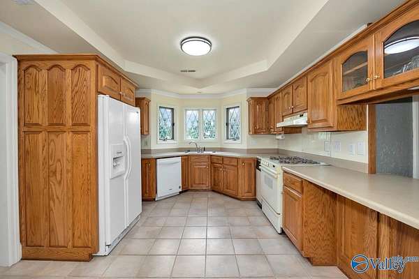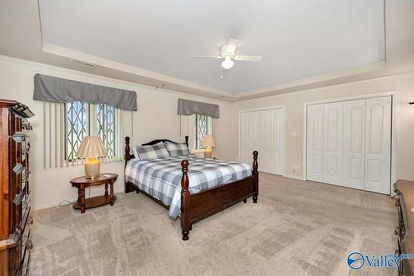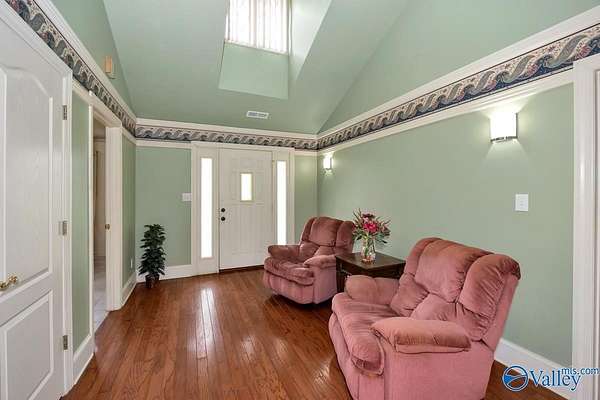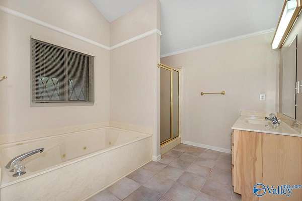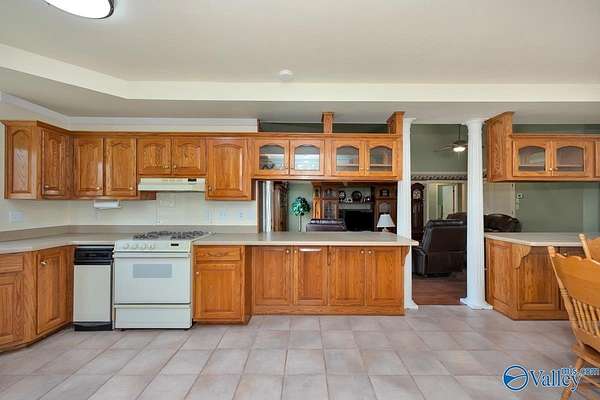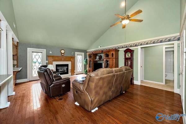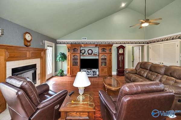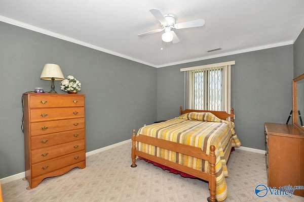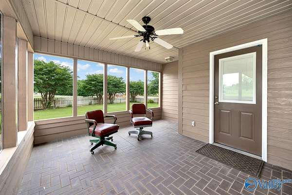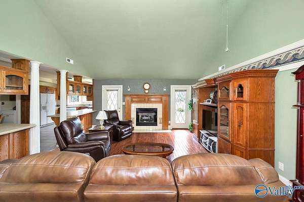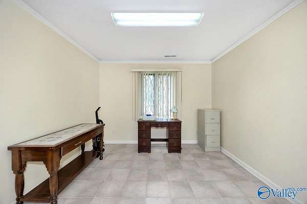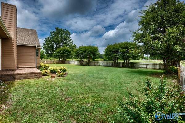 Move-in ready 3BR/3BA 2123 sf of hardy siding w/ partial brick on +/-1.5 acres in Limestone county. A grand foyer welcomes you into a generous living room w/ a vaulted ceiling and a gas log fireplace. The kitchen & dining space are tiled and equipped with plentiful oak cabinetry for storage needs. The primary bedroom boasts a trey ceiling and a luxurious bathroom complete with a separate shower and whirlpool tub. The study is fitted with built-in desk w/ shelving. The additional bedrooms are carpeted and include ceiling fans. The property also features an attached side-entry 2-car garage, a 1-car carport, and a concrete driveway for ample parking. Enclosed back porch overlooks fenced yard.