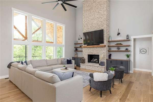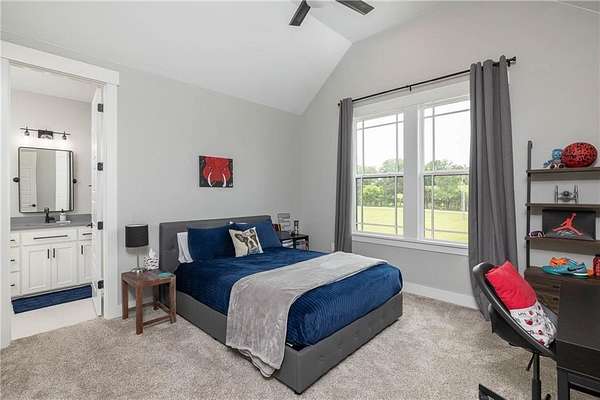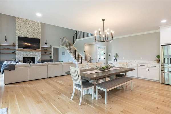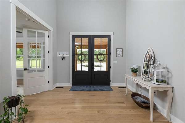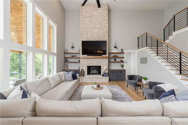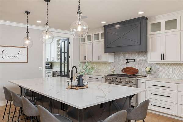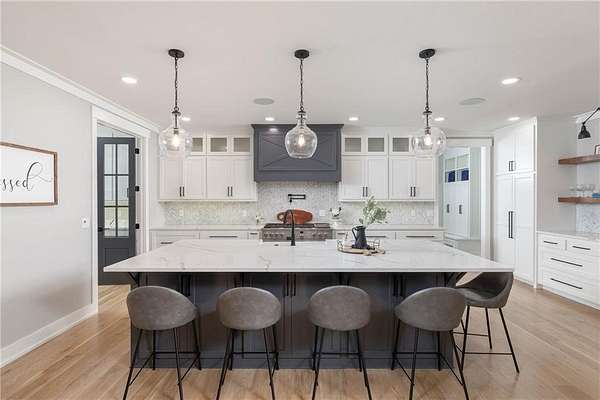 Breathtaking 6,822 sq ft custom home offering a seamless blend of luxury, comfort & function. Built in 2022, it features 6 beds, 6.5 baths across three thoughtfully designed levels. Main floor features wide plank white oak floors & a beautifully designed kitchen with 10x5 quartz island, pot filler, butler’s pantry with wine fridge & ample storage. Primary suite is a true retreat with soaking tub, walk-in shower & dual closets. Upstairs includes 3 bedrooms, 3 full baths, spacious bonus room & second laundry. Finished walk-out basement offers a bedroom, full bath, wet bar, gym, second living area, storm shelter & soundproof media studio. Step outside to your own private resort—heated saltwater pool, outdoor kitchen & shower, putting green, covered patios & 75x50 shop with oversized doors. Home also includes instant hot water, full water filtration system, generator hookup, built-in sound, Wi-Fi hubs & hardwired internet. Every detail carefully curated—this is more than a home, it's a lifestyle.