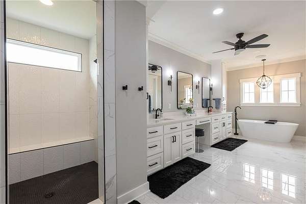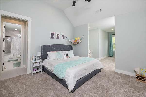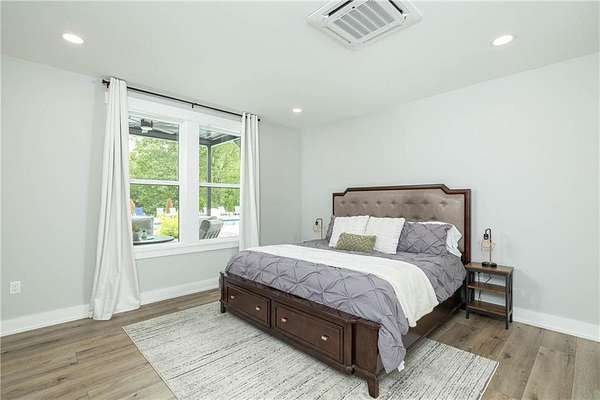 - Attic Storage, Built-Ins, Cathedral Ceiling, Ceiling Fans, Drapes, Eat-in-Kitchen, Ice Maker Connection, Led Lighting, Pantry, Programmable Thermostat, Quartz Counters, Smoke Detector, Split Floor Plan, Walk-In Closets, Wet Bar, Wired For Sound